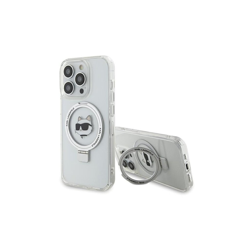 Karl Lagerfeld Hardcase Ring Stand MagSafe iPhone 15 Pro Max biela Choupette Head