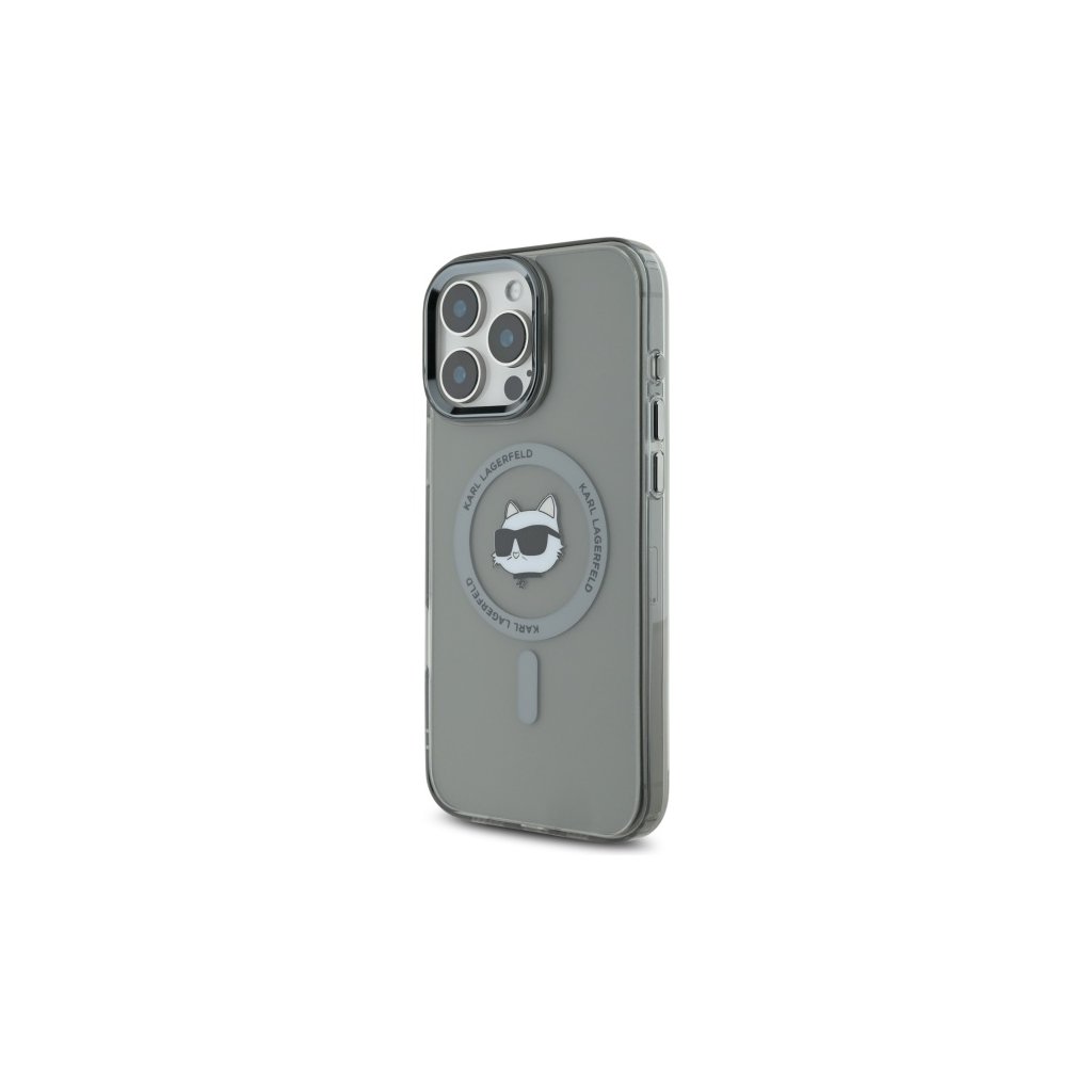 Karl Lagerfeld IML MagSafe iPhone 16 Pro Max Metal Choupette's Head strieborná