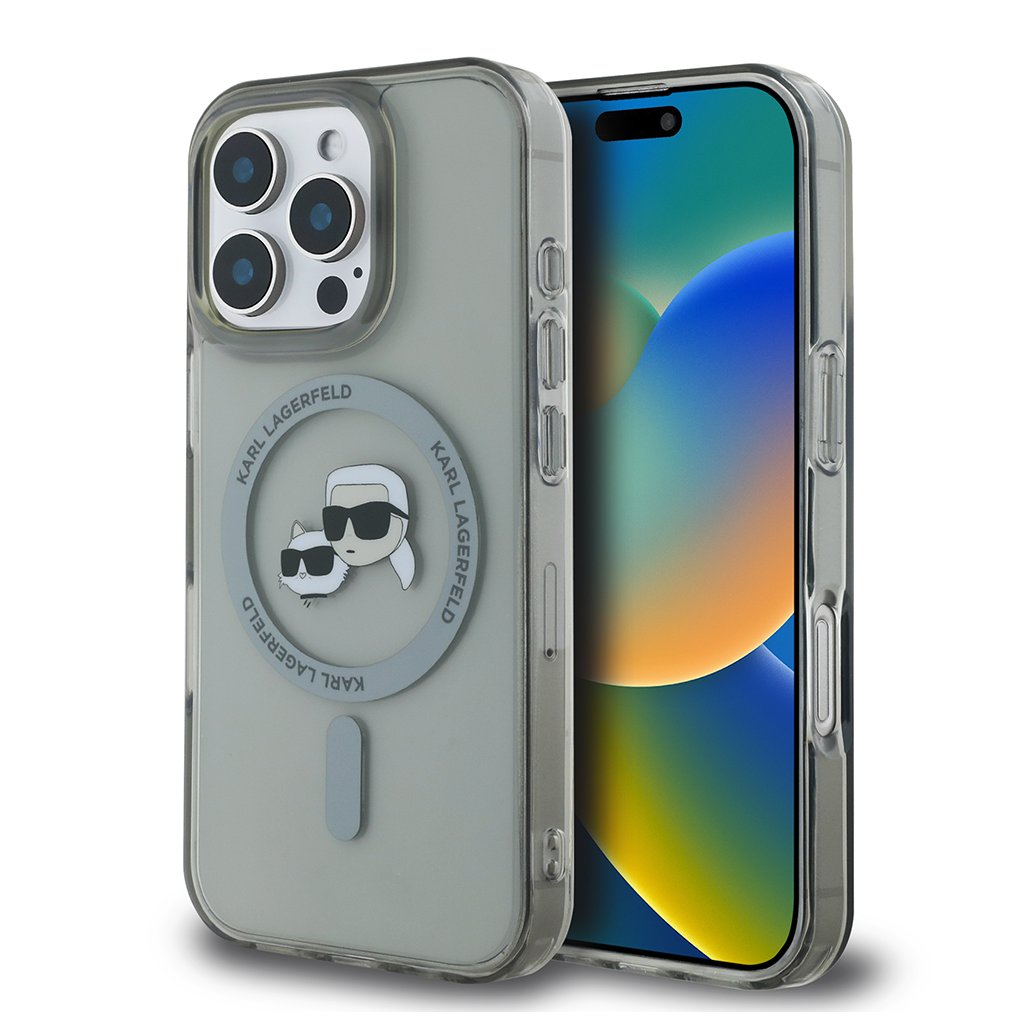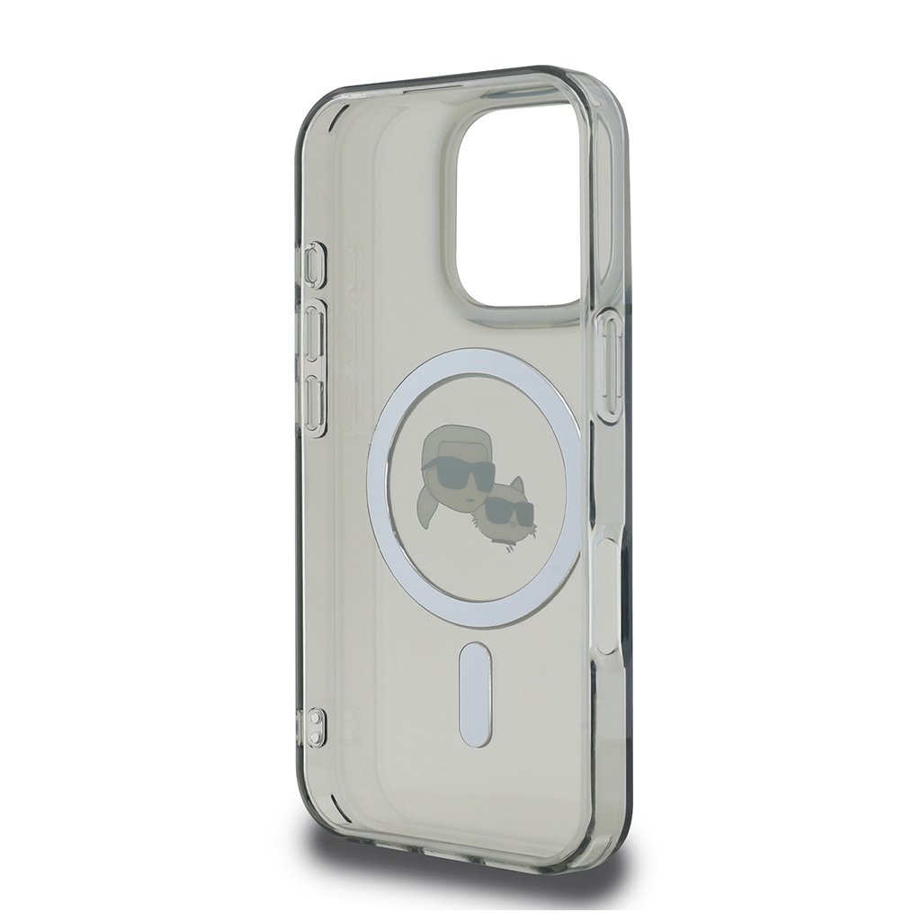 Karl Lagerfeld IML MagSafe iPhone 16 Pro Max Metal Karl&Choupette Head strieborná