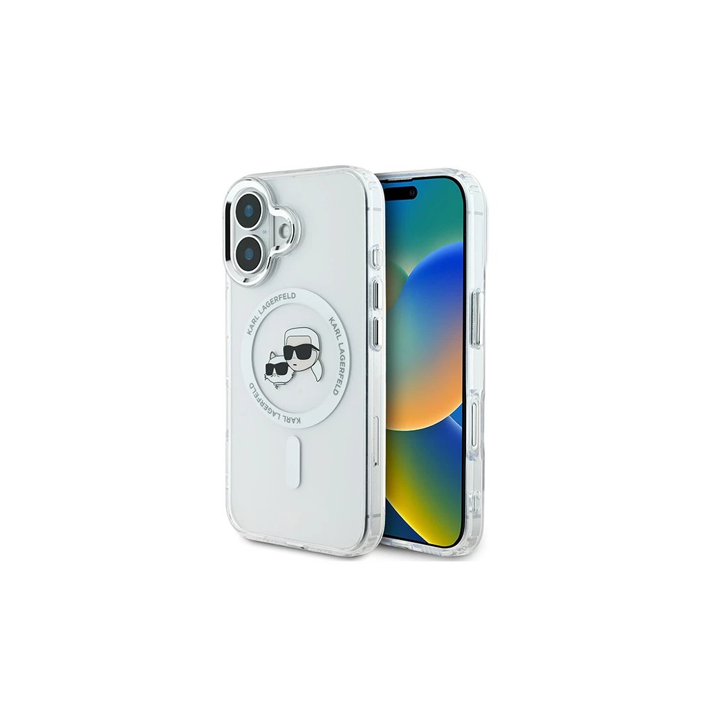 Karl Lagerfeld IML MagSafe puzdro iPhone 16 Plus biele kov Karl a Choupette Head