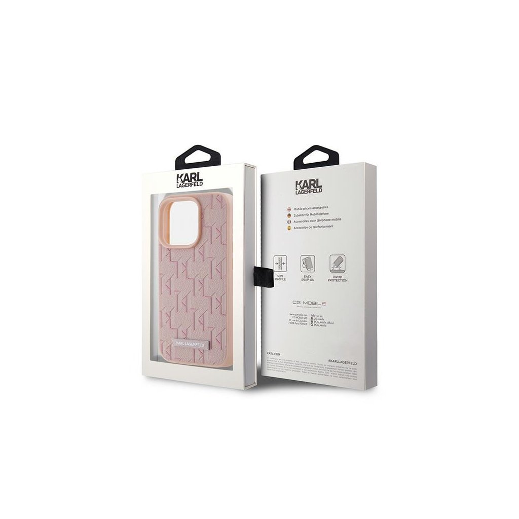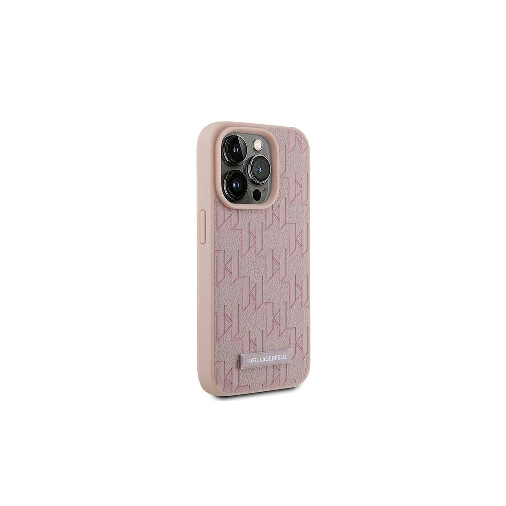 Karl Lagerfeld kožené MagSafe puzdro iPhone 15 Pro Max ružový monogram