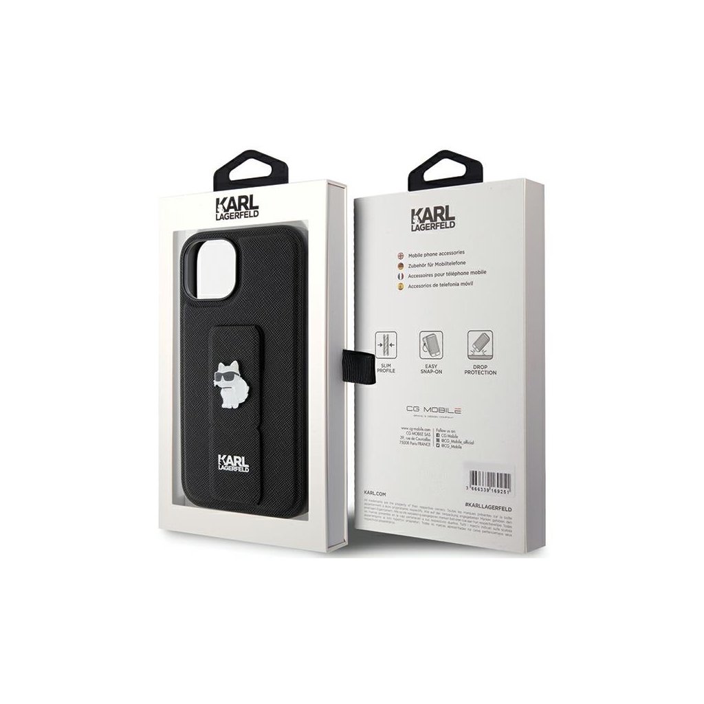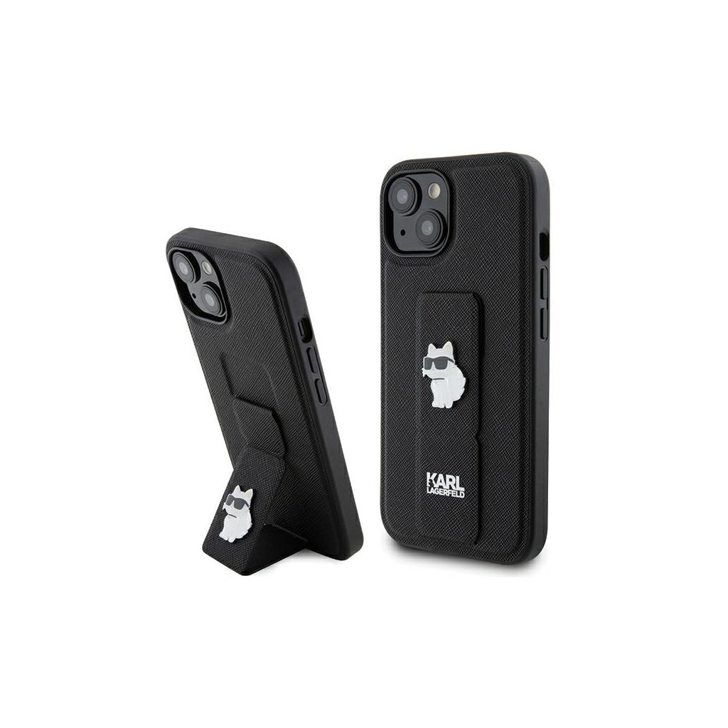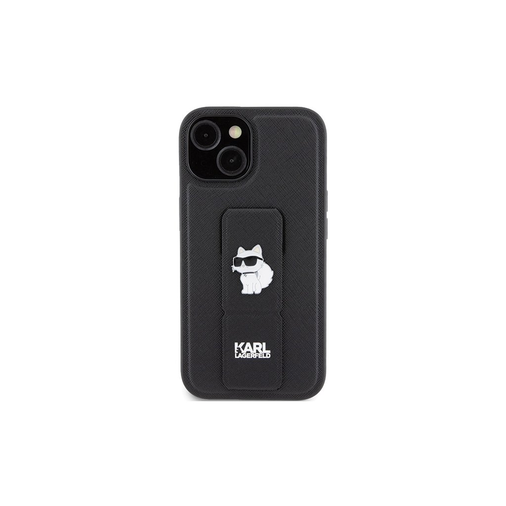 Karl Lagerfeld Saffiano Gripstand iPhone 15 Choupette ružová