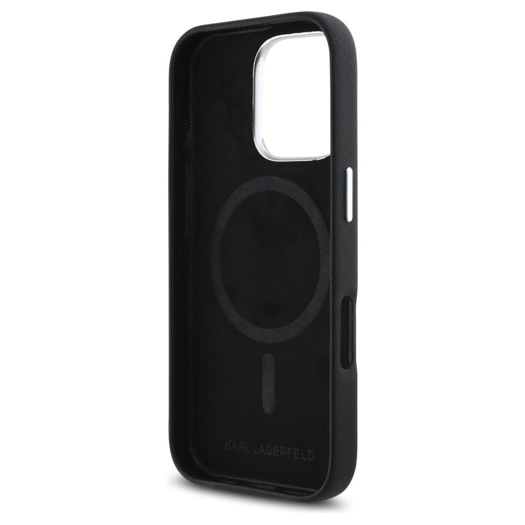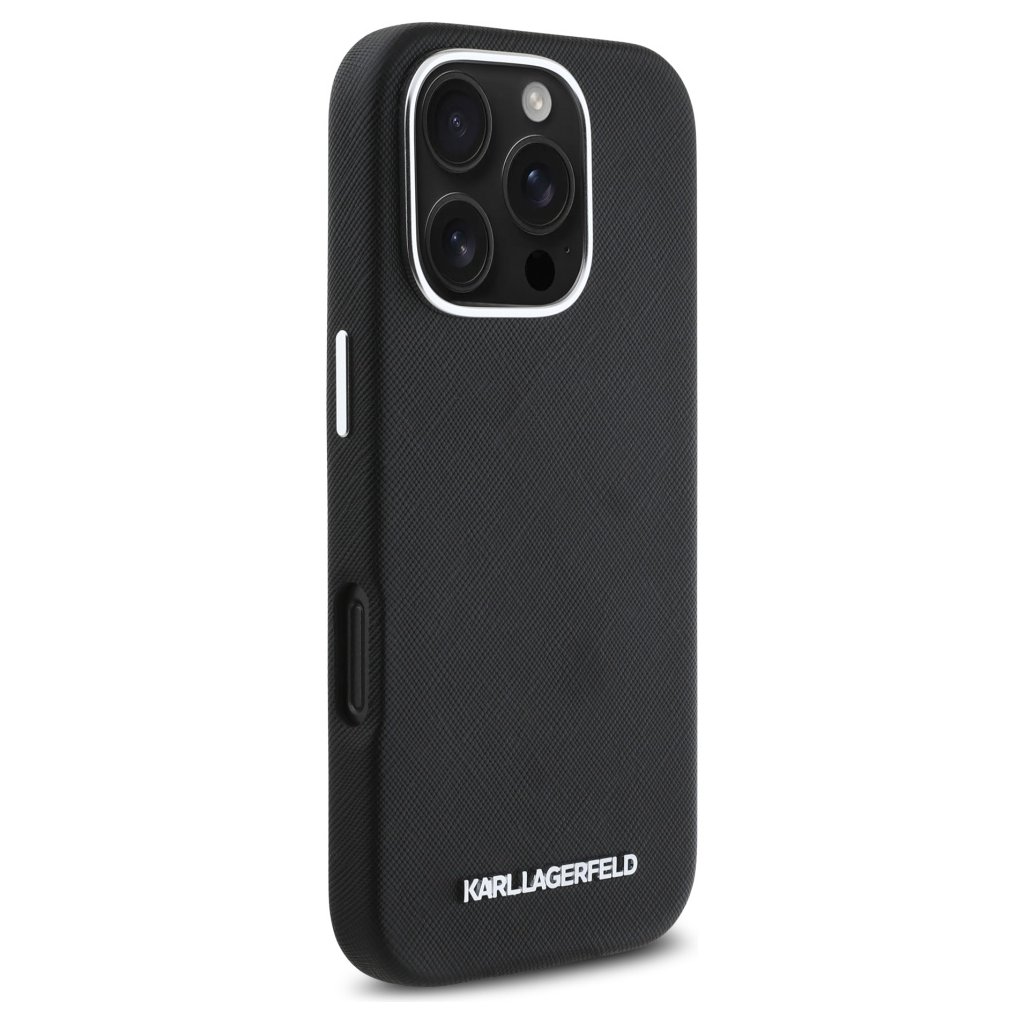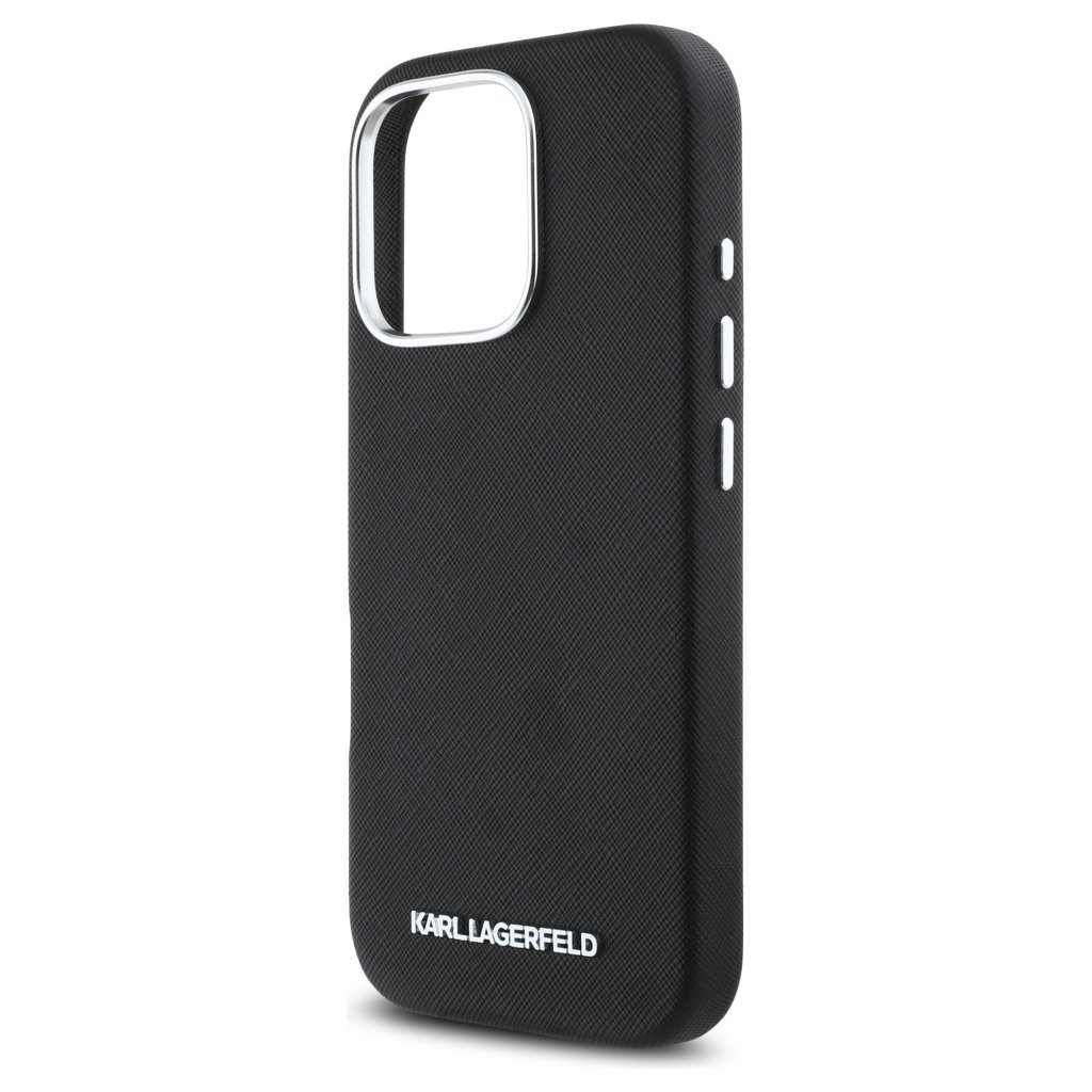 Karl Lagerfeld Saffiano puzdro s logom MagSafe iPhone 16 Pro čierne