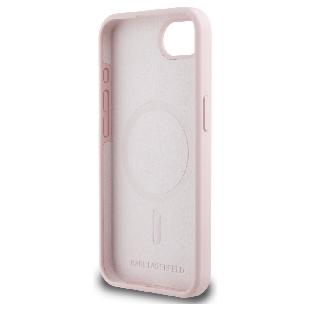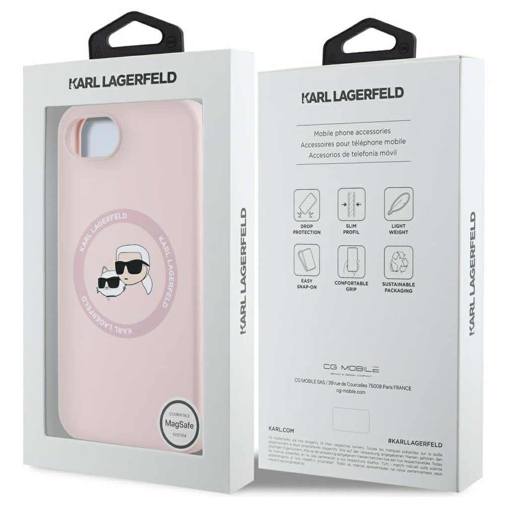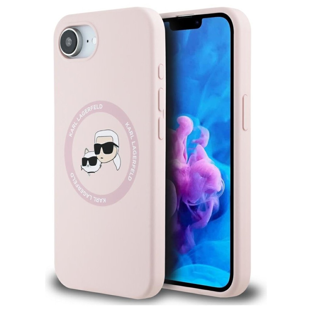 Karl Lagerfeld Silicone MagSafe iPhone 16e ružový Karl&Choupette Head