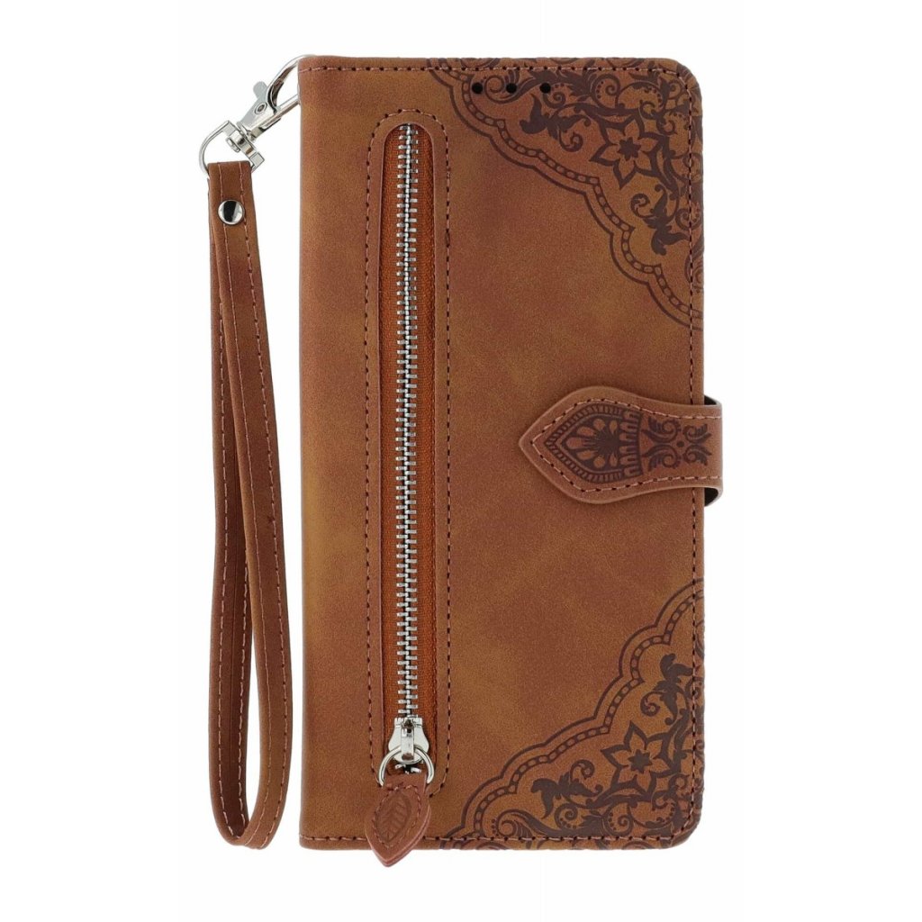 Knižkové puzdro na Xiaomi Redmi Note 14 Pro+ 5G so zipsom hnedé