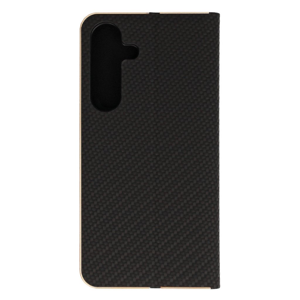 Knižkové puzdro kombinujúce štýl a ochranu, s karbonovou textúrou a zlatým rámom. Navrhnuté pre Samsung Galaxy A17 5G.