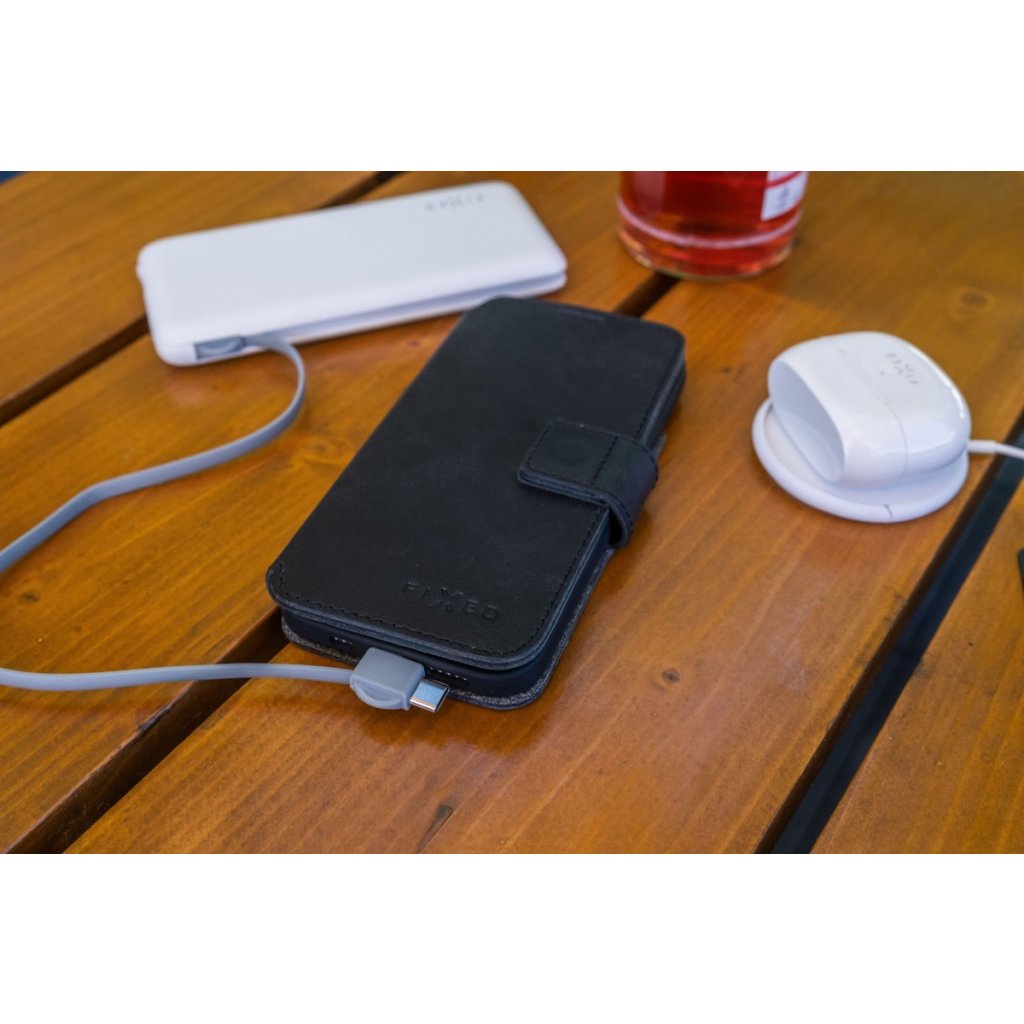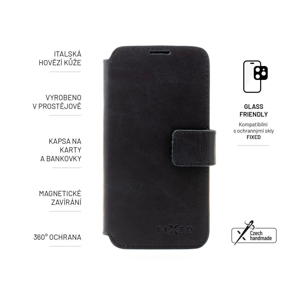Kožené Flipové puzdro FIXED ProFit pre Apple iPhone 14 Plus, čierne