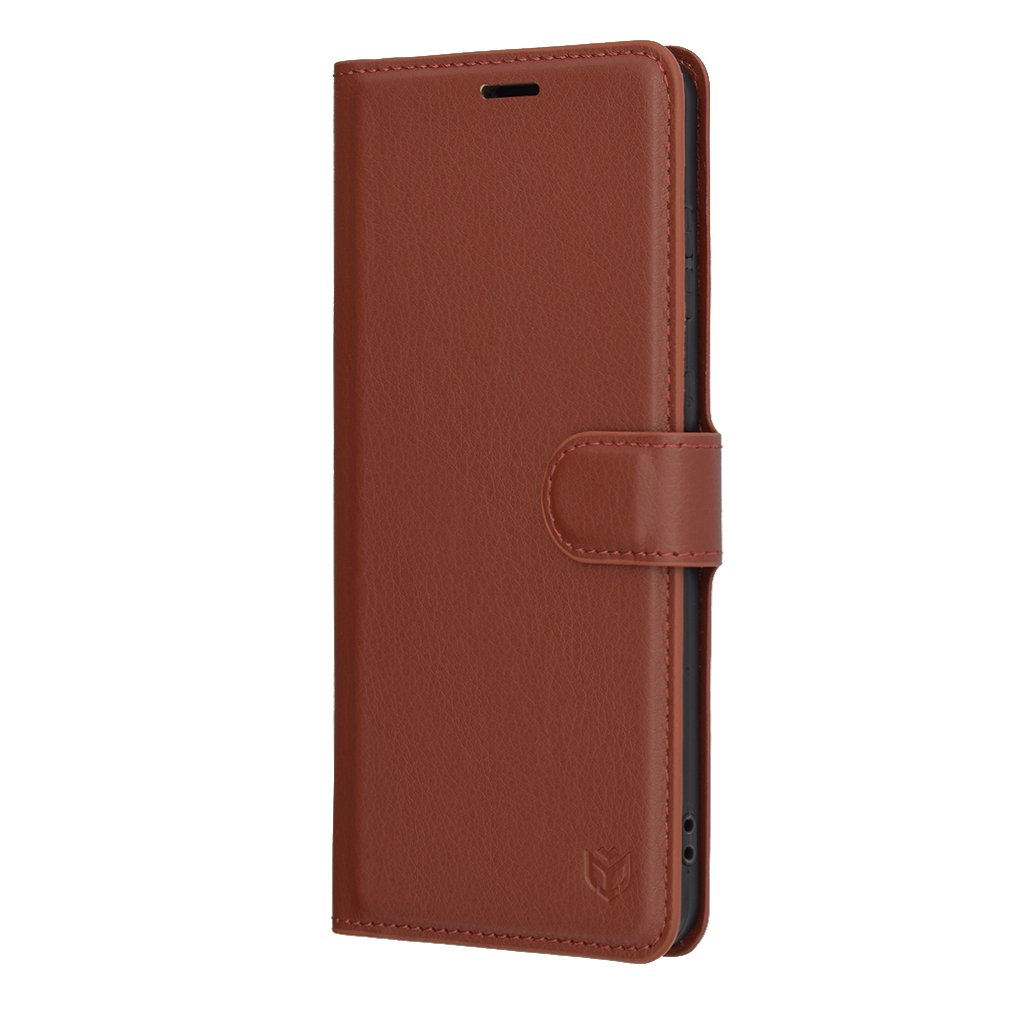 Puzdro sa pýši luxusným hnedým koženým povrchom s jemnou textúrou, ktorá je príjemná na dotyk a dodáva telefónu punc elegancie. Precízne spracovanie je patrné na každom detaile, od dokonalých výrezov pre fotoaparát, konektory a reproduktory, až po citlivé tlačidlá, ktoré zaisťujú bezproblémové ovládanie. Predný odklápací kryt chráni displej pred poškriabaním a nečistotami, zatiaľ čo diskrétne magnetické zapínanie udržuje puzdro bezpečne zavreté. Na prednej strane je decentne vyrazené logo Techsuit, ktoré podčiarkuje originalitu a kvalitu produktu.