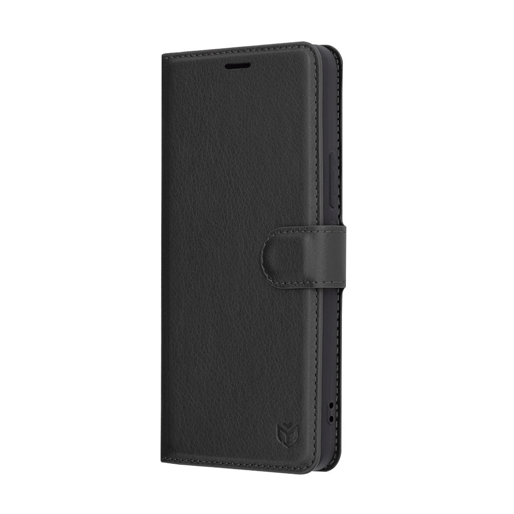Puzdro Techsuit sa pýši nadčasovým folio dizajnom, ktorý obopína telefón zo všetkých strán. Vonkajšia strana je vyrobená z kvalitnej umelej kože s jemnou textúrou, ktorá je príjemná na dotyk a dodáva puzdru luxusný vzhľad. Elegantná čierna farba podčiarkuje minimalistický štýl a hodí sa ku každej príležitosti. Pre bezpečné uzavretie je puzdro vybavené praktickým magnetickým pásikom na boku.