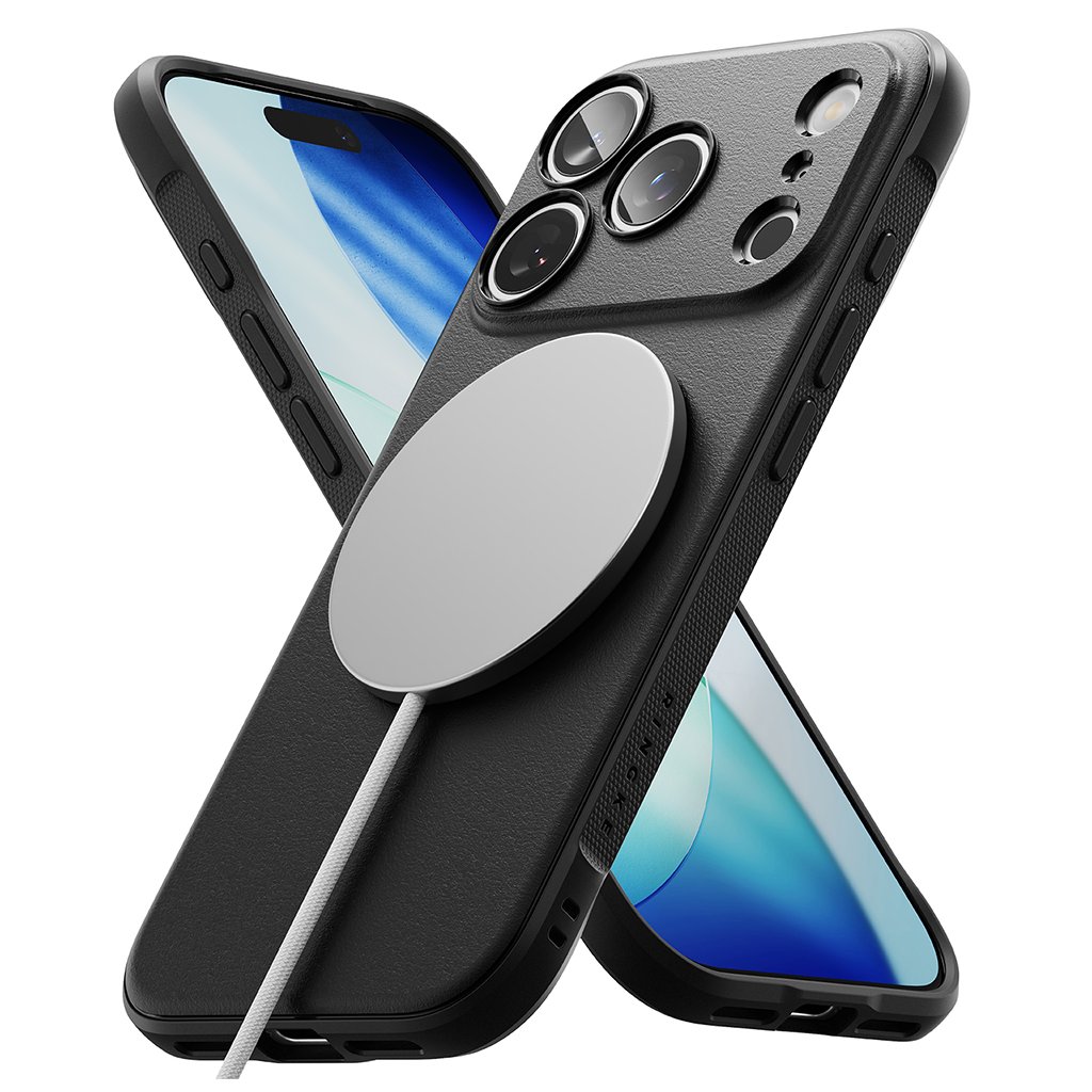 Kryt Ringke Onyx MagSafe sa pýši moderným brúseným dizajnom v elegantnej čiernej farbe, ktorý dodáva vášmu iPhonu 17 Pro prémiový vzhľad a príjemný pocit na dotyk. Jeho matný, textúrovaný povrch nielenže skvele vyzerá, ale tiež zlepšuje úchop a minimalizuje odtlačky prstov.