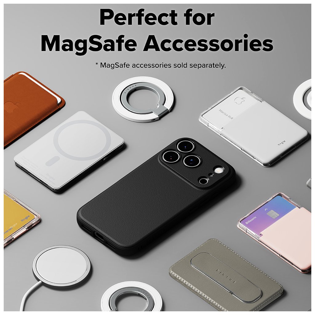 - Integrovaný MagSafe krúžok zaručuje silné magnetické spojenie a plnú kompatibilitu so všetkým MagSafe príslušenstvom, od bezdrôtových nabíjačiek po peňaženky.