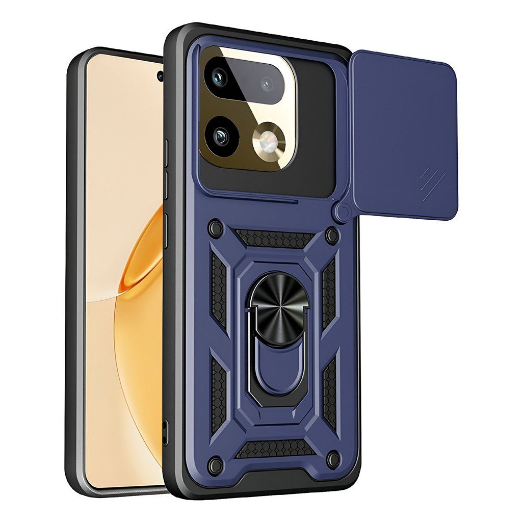 Kryt Techsuit CamShield Series - Realme 16 Pro+ Modrý Tento kryt je navrhnutý pre model Realme 16 Pro+ a vyznačuje sa taktickým a vysoko funkčným dizajnom v modrom farebnom tóne. Parametre: * Značka: Techsuit * Materiál: TPU a polykarbonát * Farba: Modrá * Určené pre model: Realme 16 Pro+ Výhody produktu: * Posuvný panel zadného fotoaparátu s jemným rebrovaním po stranách pre pevnejší úchop. * Mechanická ochrana objektívov fotoaparátu posuvnou krytkou. * Protišmyková úprava. * Zvýšená ochrana rohov. * Vyrobené z starostlivo vybraných a zdravotne nezávadných materiálov. * Presné spracovanie a funkčnosť.