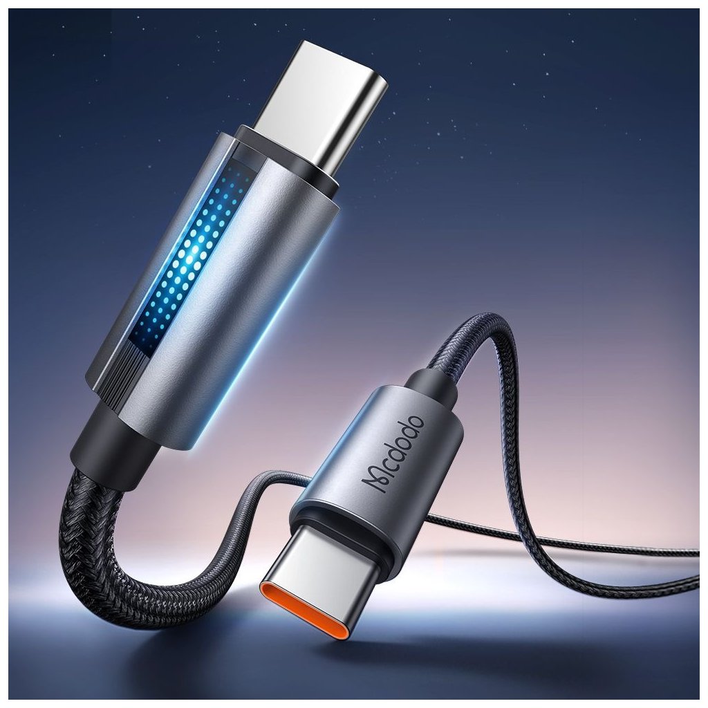 Mcdodo – dátový kábel (CA-5740) – s dýchacím svetlom, USB-C na USB-C, 100W, 5A, 1.2m – čierny