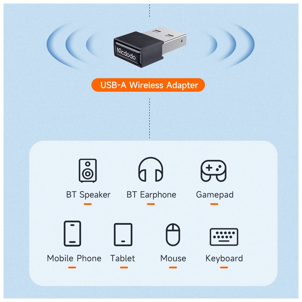 Mcdodo - bezdrôtový adaptér (OT-1580) - USB, BT verzia V5.1, ABS - čierny