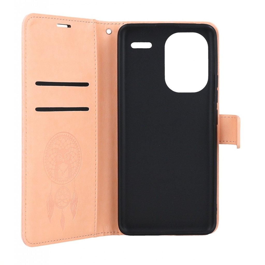 Flipové puzdro Mezzo pre Xiaomi Redmi Note 13 Pro+ 5G Lapač so sovičkou marhulové