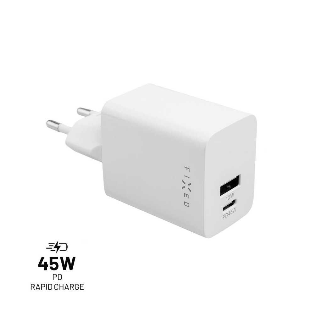 Predstavujeme vám minimalistickú nabíjačku FIXED Mini novej generácie, ktorá kombinuje výkon a kompaktnosť. S výkonom 45 W a dvojicou portov USB-C a USB-A je ideálnym riešením pre rýchle a bezpečné nabíjanie vašich zariadení, či už ide o smartfón, tablet alebo menší notebook.