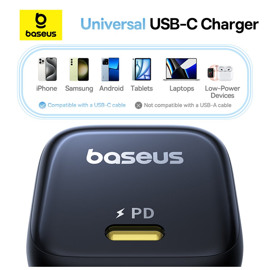 Baseus Wall Charger PicoGo 45W je navrhnutá ako univerzálna USB-C nabíjačka, ktorá je kompatibilná s širokou škálou moderných elektronických zariadení. Vďaka podpore štandardu Power Delivery (PD) dokáže efektívne nabíjať nielen chytré telefóny (iPhone, Samsung, Android), ale aj tablety, notebooky a ďalšie nízkoenergetické zariadenia, ako sú slúchadlá či chytré hodinky.