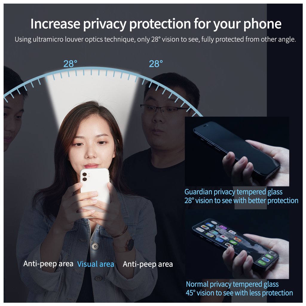 Toto sklo je navrhnuté tak, aby absorbovalo nárazy a chránilo displej vášho iPhonu pred poškrabaním. Vďaka inovatívnej vrstve, ktorá obmedzuje viditeľnosť na 28°, si môžete byť istí, že vaše súkromie zostane chránené, zatiaľ čo si užívate všetky výhody modernej technológie.Jednoduchá inštalácia