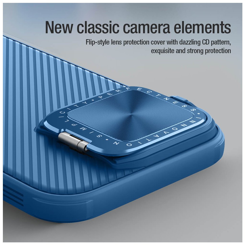 Puzdro Nillkin CamShield Prop v elegantnej modrej farbe je navrhnuté tak, aby dokonale splynulo s vaším iPhone 16 Pro. Jeho zadná strana je opatrená jemnou textúrou s diagonálnymi pruhmi, ktorá nielenže dodáva puzdru moderný vzhľad, ale taktiež zlepšuje úchop a minimalizuje riziko vykĺznutia z ruky. Kľúčovým prvkom je inovatívny posuvný kryt fotoaparátu s detailným CD vzorom, ktorý chráni citlivé šošovky pred poškriabaním a prachom, a zároveň zaisťuje vaše súkromie. Tento kryt je možné navyše ľahko premeniť na praktický stojan, ktorý umožňuje pohodlné sledovanie obsahu v horizontálnej polohe. Puzdro je vyrobené z kombinácie odolného polykarbonátu (PC) a flexibilného TPU, čo zaručuje vysokú odolnosť proti nárazom a pádom.