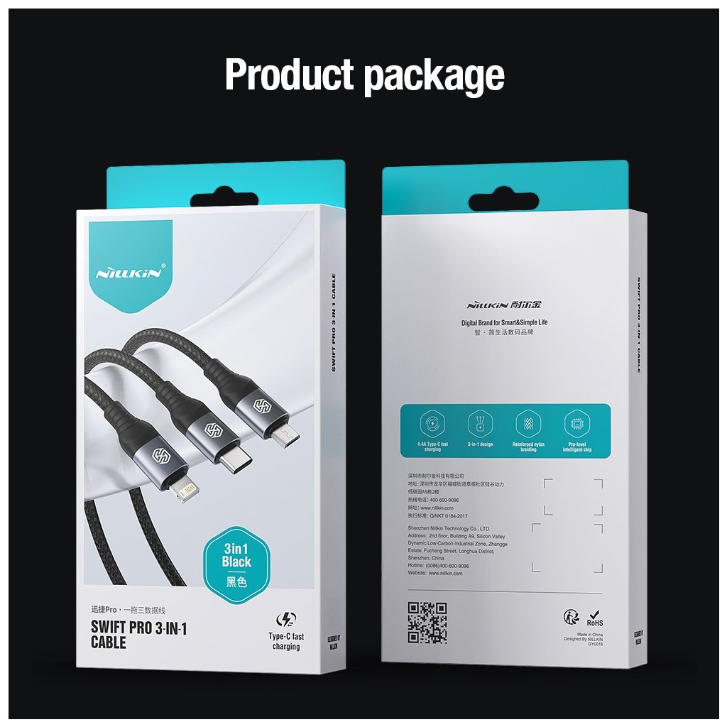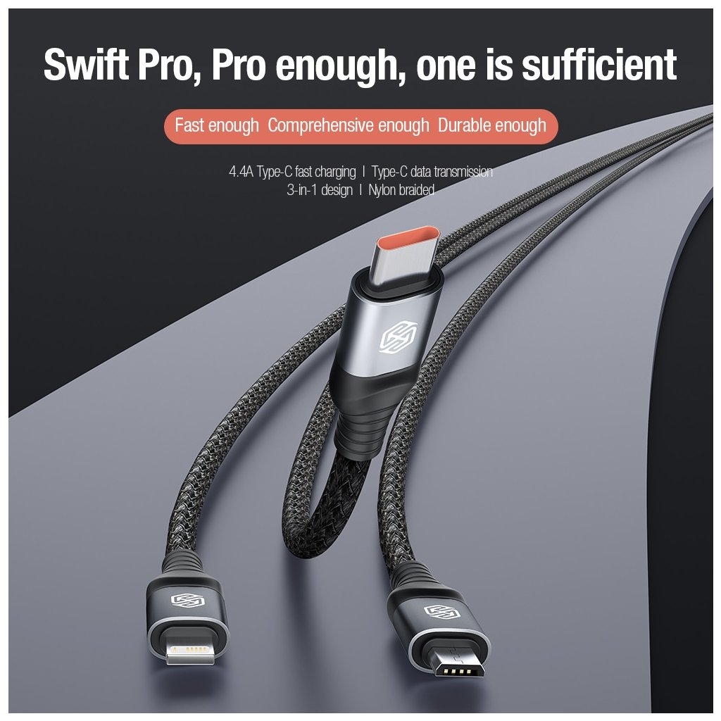 S káblom Nillkin Swift Pro 3v1 získate spoľahlivého partnera pre každodenné nabíjanie, ktorý vás nikdy nesklame. Vyskúšajte ho a presvedčte sa sami!