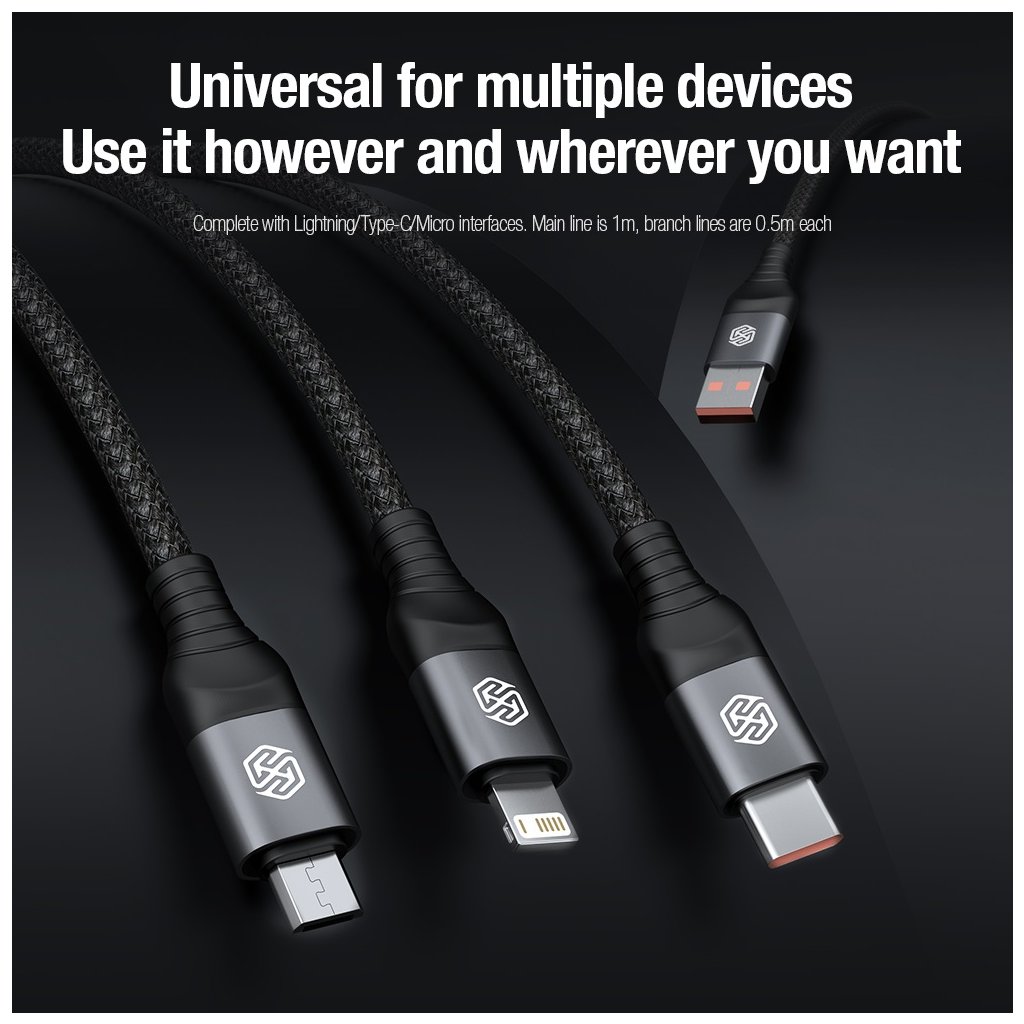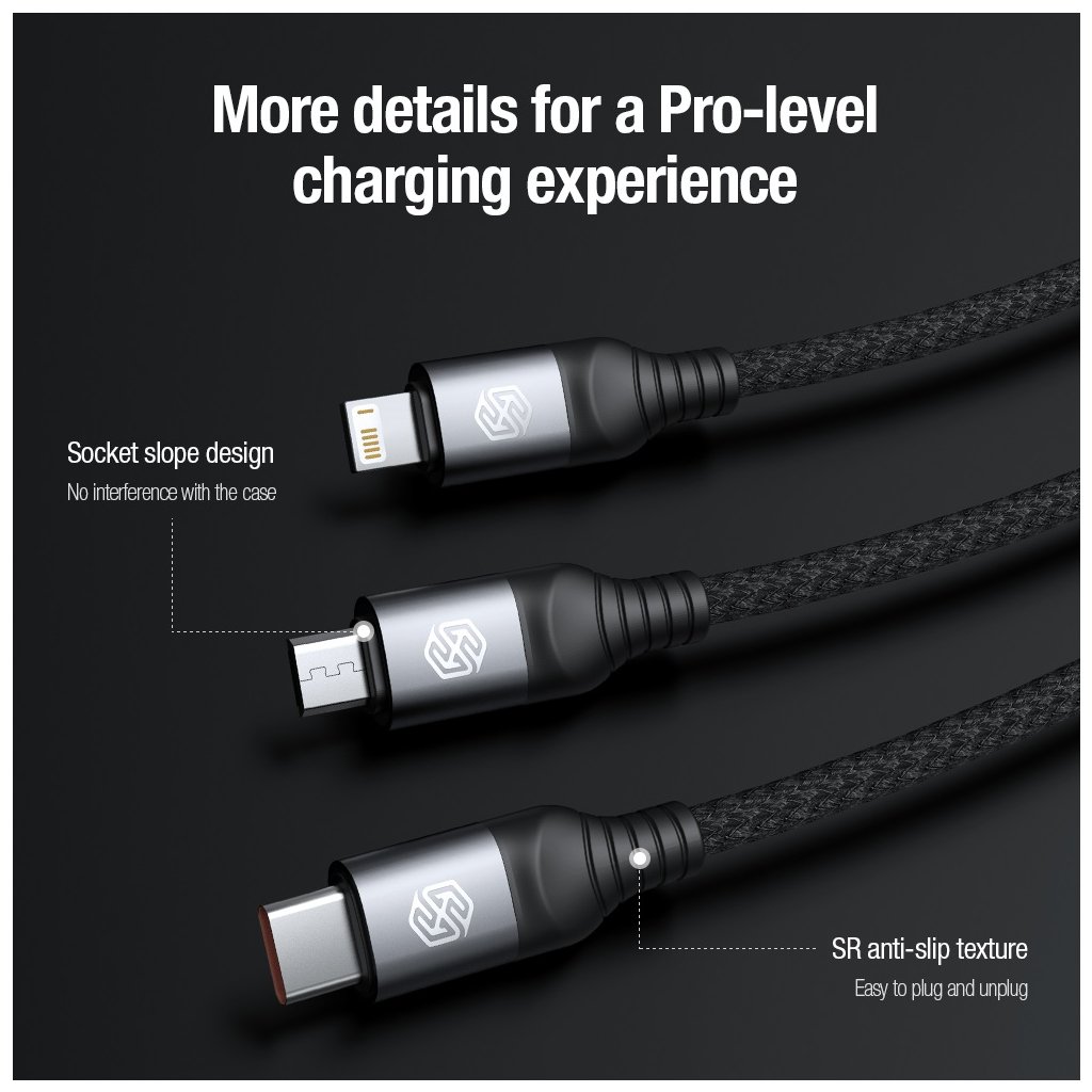 Dátový kábel Nillkin Swift Pro 3v1 1,5 m čierny