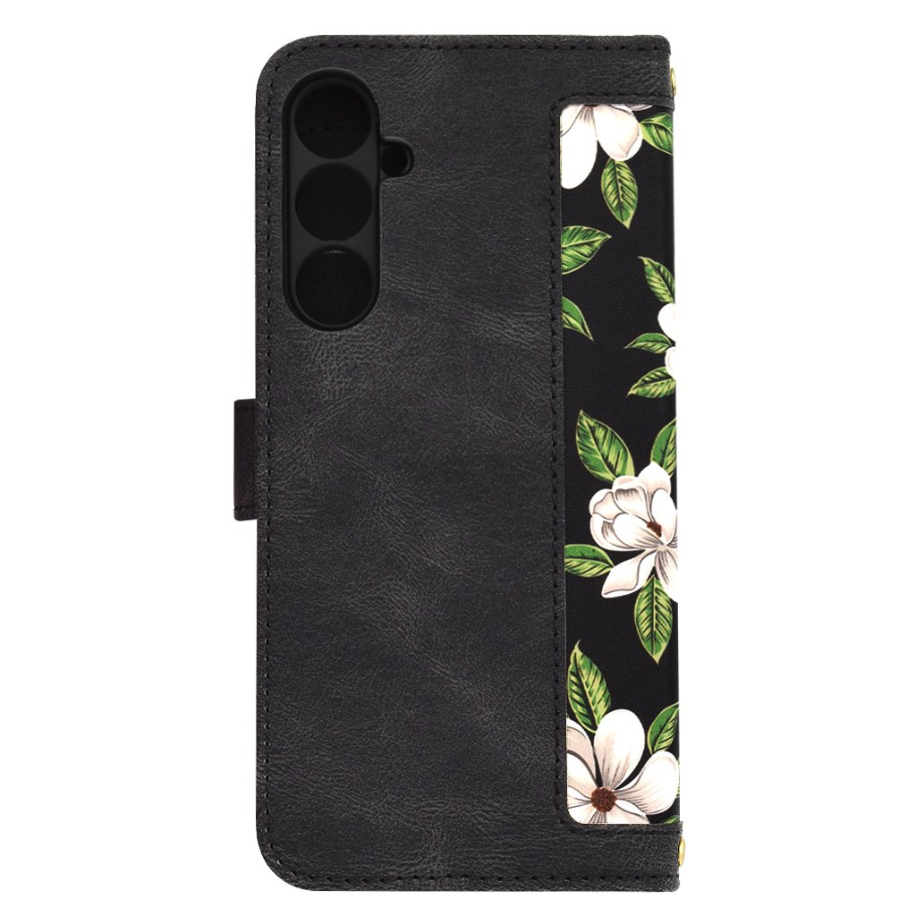 Predstavujeme elegantné a funkčné flipové puzdro Techsuit FlipCraft, navrhnuté špeciálne pre váš Samsung Galaxy S23 FE. Toto puzdro kombinuje prvotriednu ochranu s jedinečným dizajnom, ktorý podčiarkne váš osobitý štýl. Dizajn a spracovaniePuzdro sa pýši sofistikovaným vzhľadom s čiernym základom, ktorý je oživený nádherným kvetinovým motívom. Biele kvety s jemnými zelenými listami sú rozmiestnené po celej prednej strane a vnútornej časti puzdra, čo vytvára dojem "Flowers of the Dawn" – kvetov úsvitu. Vonkajšia strana je vyrobená z kvalitnej textúrovanej umelej kože, ktorá je príjemná na dotyk a zaisťuje pevný úchop. Precízne šitie po okrajoch dodáva puzdru luxusný vzhľad a zvyšuje jeho odolnosť. Puzdro je navrhnuté ako peňaženkové, s praktickým magnetickým zatváraním a pútkom pre ľahké nosenie. Vnútri nájdete praktické priehradky na karty a bankovky, čo z neho robí ideálneho spoločníka pre každodenné použitie. Parametre a vlastnosti