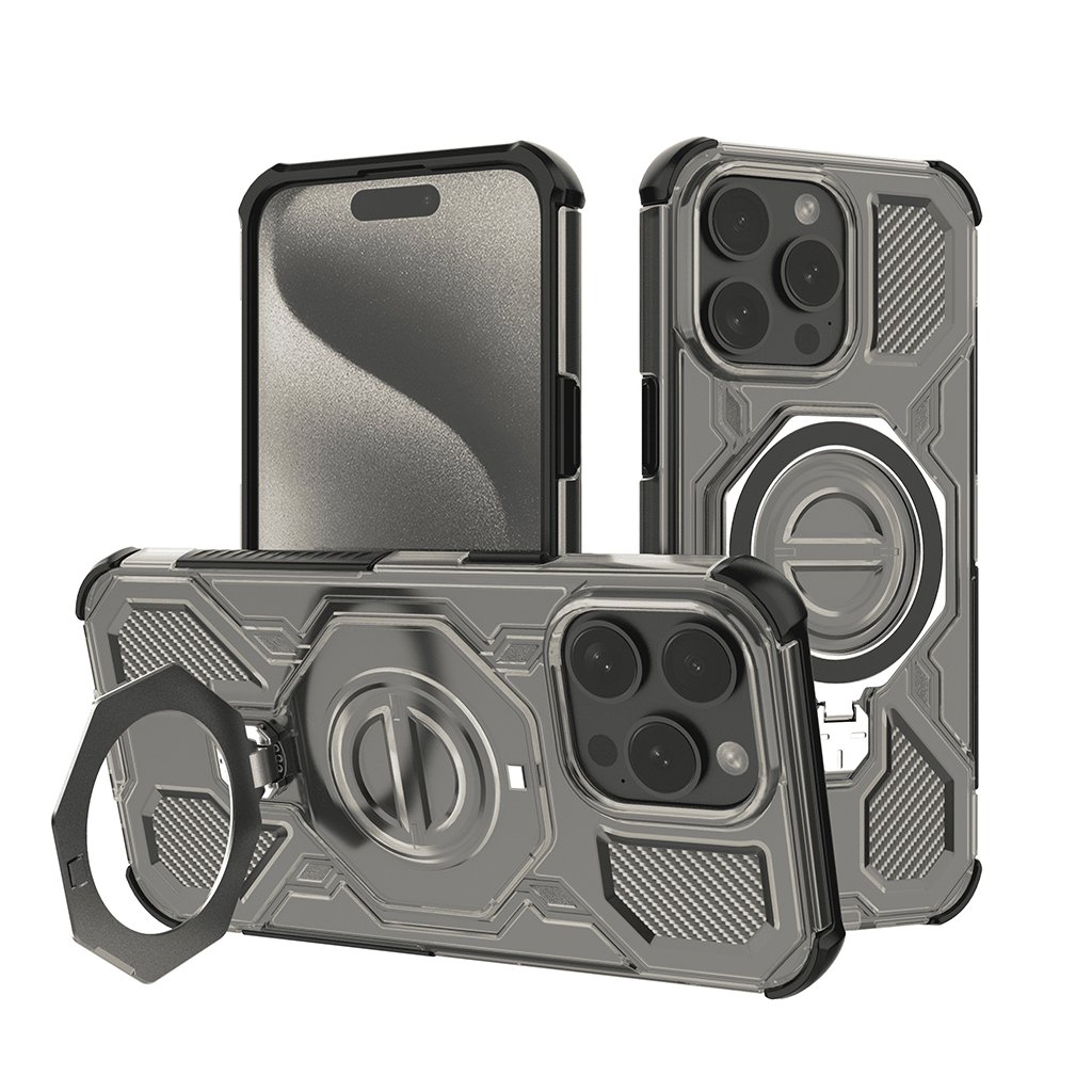 Kryt Techsuit Carbon Shield PRO sa pýši robustným a moderným dizajnom v dymovo čiernej farbe, ktorá dodáva vášmu iPhone 15 Pro sofistikovaný vzhľad. Jeho konštrukcia kombinuje odolné materiály s textúrovanými prvkami, ktoré pripomínajú karbonové vlákna, čo nielen zvyšuje estetickú hodnotu, ale aj zlepšuje úchop. Zosilnené rohy poskytujú extra ochranu proti pádům a nárazom. Integrovaný magnetický krúžok na zadnej strane zaisťuje kompatibilitu s MagSafe príslušenstvom a zároveň slúži ako praktický výklopný stojanček pre pohodlné sledovanie obsahu.