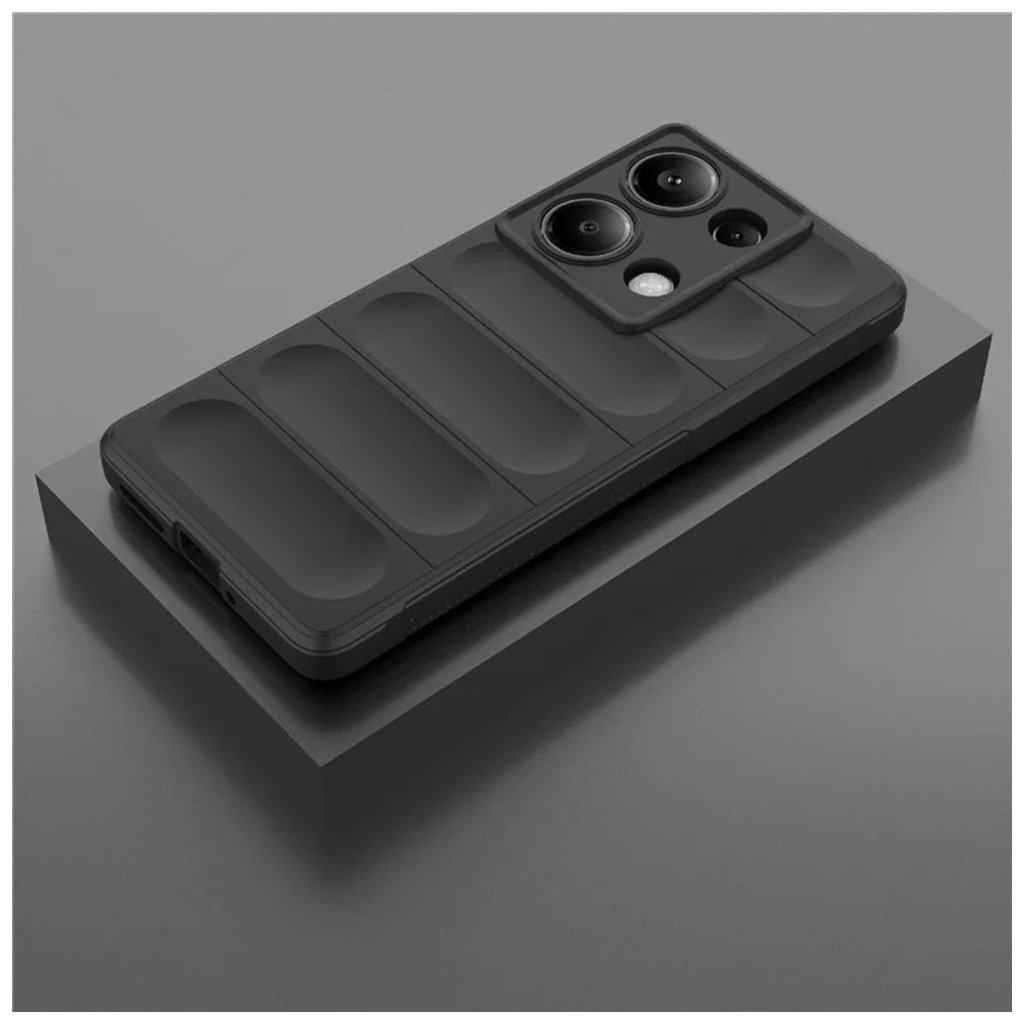 Kryt Techsuit Magic Shield v elegantnej čiernej farbe je navrhnutý tak, aby dokonale splynul s estetikou vášho telefónu a zároveň mu poskytol robustnú ochranu. Jeho zadná strana sa pýši unikátnym **rebrovaným dizajnom so štyrmi horizontálnymi segmentmi**, ktoré nielenže dodávajú krytu moderný vzhľad, ale taktiež zlepšujú úchop a minimalizujú riziko vykĺznutia z ruky. Oblasť okolo fotoaparátu je **zvýšená a precízne tvarovaná**, čo zaisťuje maximálnu ochranu objektívov pred poškriabaním a nárazmi. Mierne zvýšené okraje okolo displeja potom chránia obrazovku pri položení telefónu na rovnú plochu. Celkový dizajn je premyslený a funkčný, s dôrazom na dlhú životnosť a odolnosť proti každodennému opotrebovaniu.Parametre produktu: