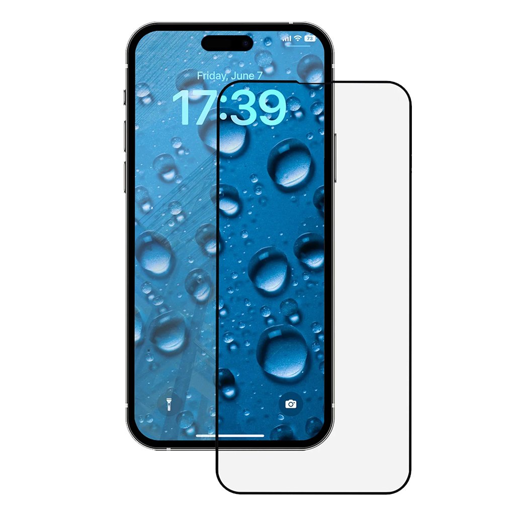 - Presné výrezy: Sklo je navrhnuté tak, aby presne kopírovalo výrezy pre Dynamic Island a senzory, čím je zabezpečená plná funkčnosť všetkých prvkov displeja.