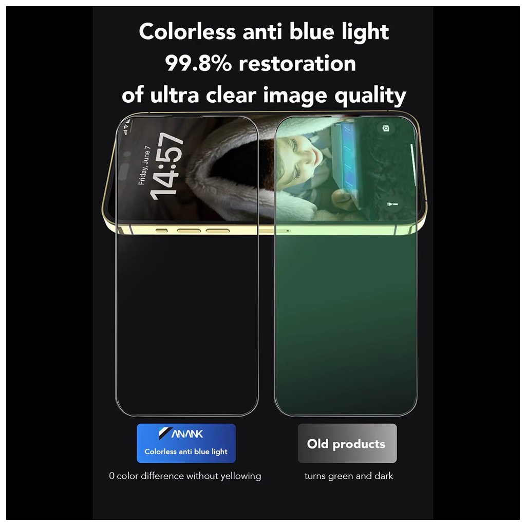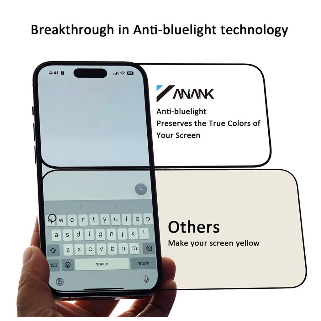 Ochranné sklo ANANK 2.5D proti modrému svetlu pre iPhone 15 - čierne