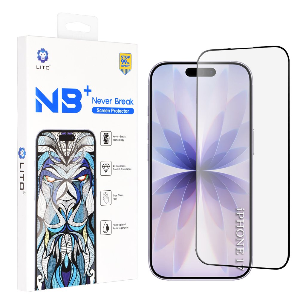 Ochranné sklo Lito NB+ Never Break pre iPhone 17 / iPhone 16 Pro – čierne