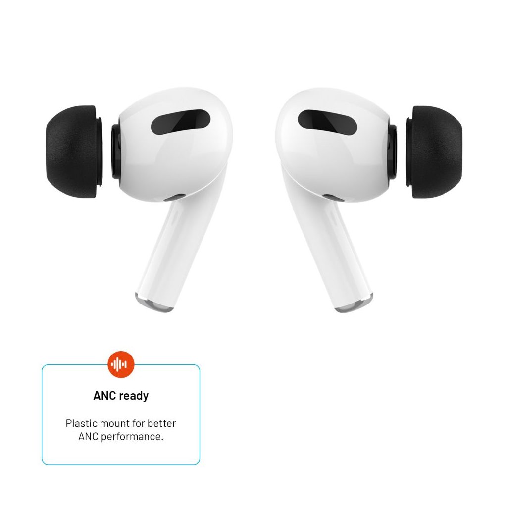 Špunty vyrobené z kvalitnej pamäťovej peny, navrhnuté špeciálne pre slúchadlá Apple AirPods Pro a AirPods Pro 2. Dodávané v balení obsahujúcom dve sady (2 páry) špuntov vo veľkosti M, so sieťkou proti nečistotám a vnútorným nástavcom pre optimalizáciu funkcie aktívneho potláčania hluku (ANC).