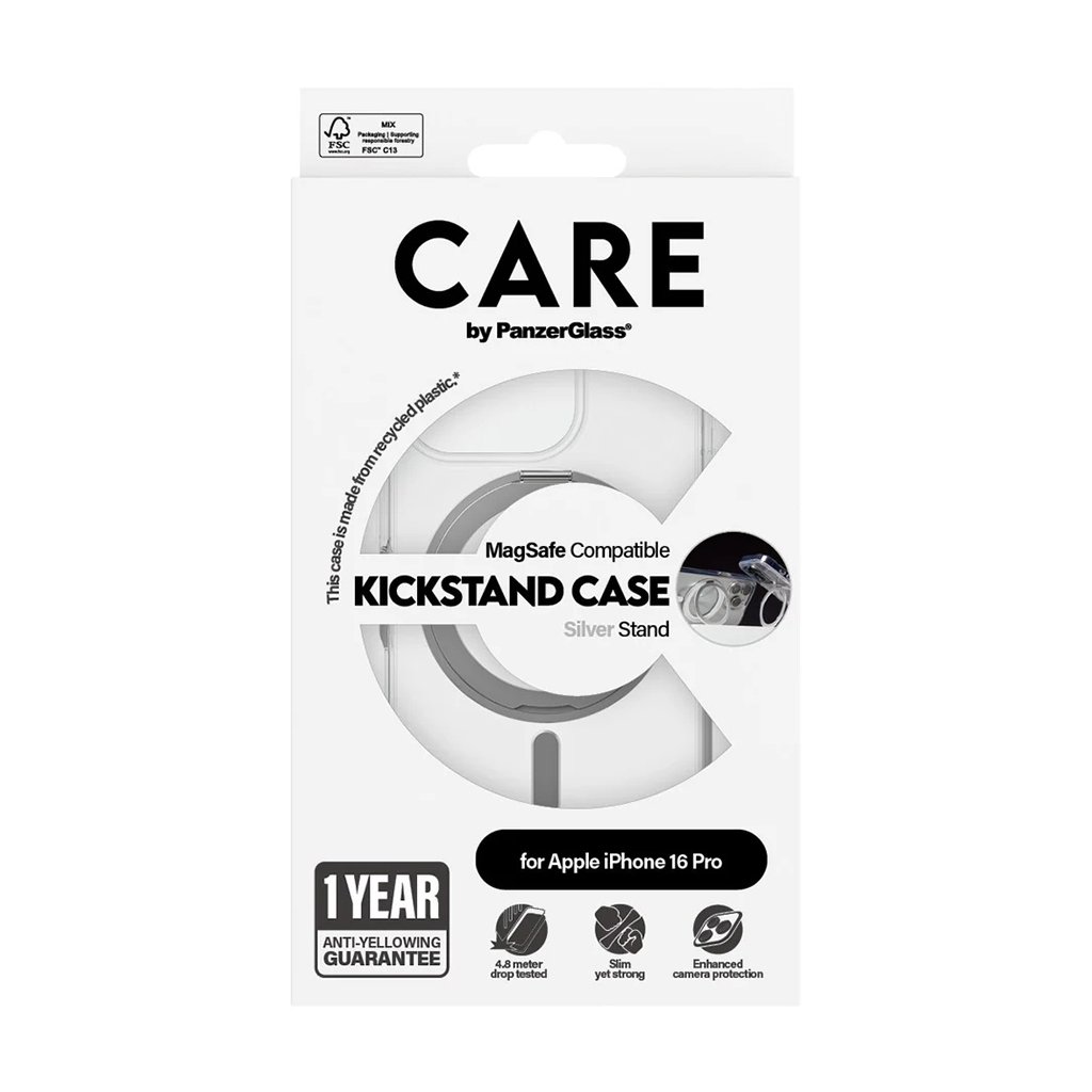 PanzerGlass® CARE Feature Silver Kickstand & MagSafe pre iPhone 16 Pro – priehľadný