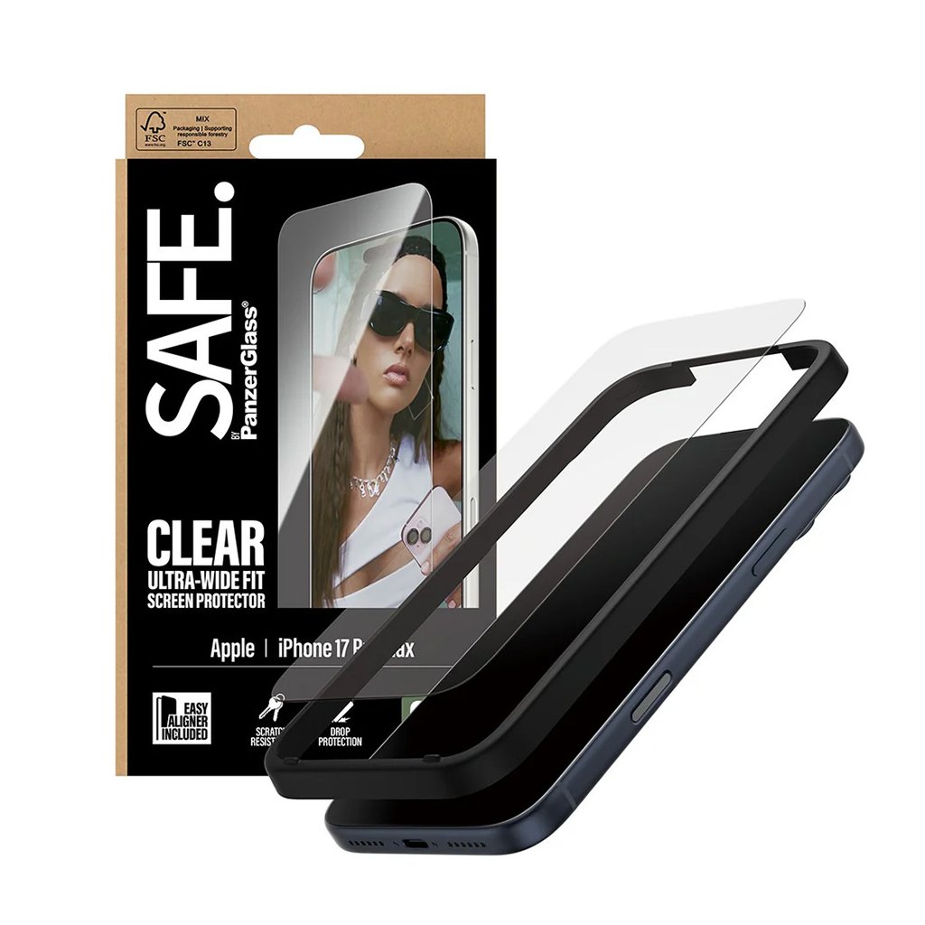 Ochranné sklo PanzerGlass® SAFE Ultra-Wide Fit je navrhnuté tak, aby dokonale kopírovalo krivky displeja vášho iPhone 17 Pro Max a poskytovalo **pokrytie od okraja k okraju**, pričom je stále kompatibilné s väčšinou ochranných krytov. Jeho krištáľovo čistá priehľadnosť zaručuje neskreslený vizuálny zážitok a zachováva pôvodný jas a farby displeja. Vďaka **oleofóbnej vrstve** je povrch skla odolný proti odtlačkom prstov a šmuhám, čo uľahčuje jeho čistenie a udržuje displej stále ako nový. Súčasťou balenia je aj **EasyAligner**, špeciálny rámček, ktorý zaisťuje jednoduchú a presnú aplikáciu bez bublín.Kľúčové vlastnosti: