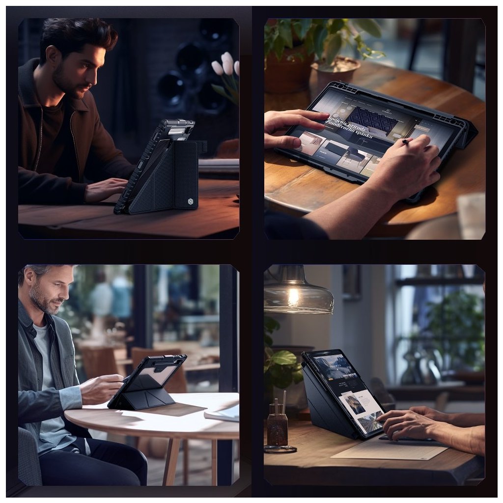Flip kryt slúži nielen ako ochrana, ale aj ako praktický stojan, ktorý umožňuje nastaviť tablet do rôznych uhlov pre písanie, čítanie alebo prezeranie webu. Unikátny skladací dizajn vám umožní ľahko prepínať medzi rôznymi režimami, čo oceníte pri sledovaní filmov alebo videohovorov.