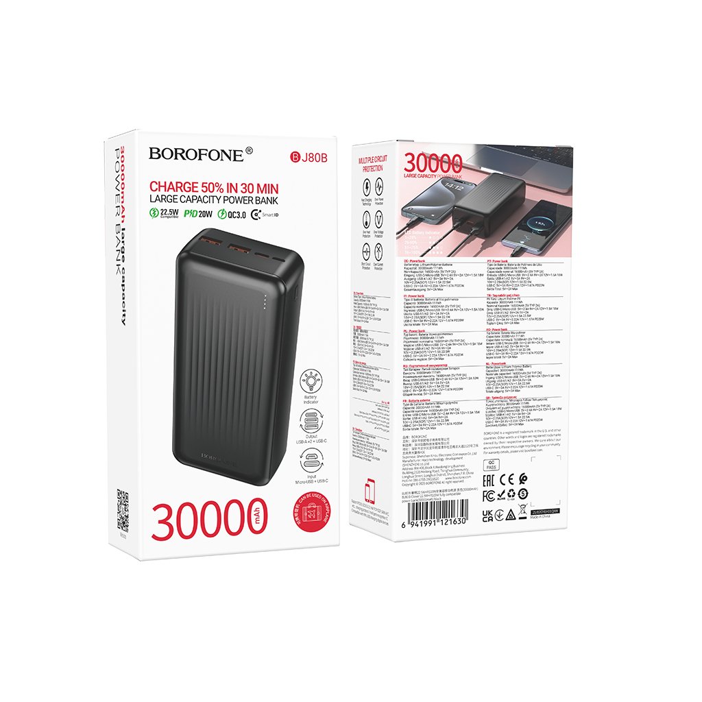 Powerbank Borofone 30000mAh BJ80B Clever - Váš spoľahlivý energetický partner!