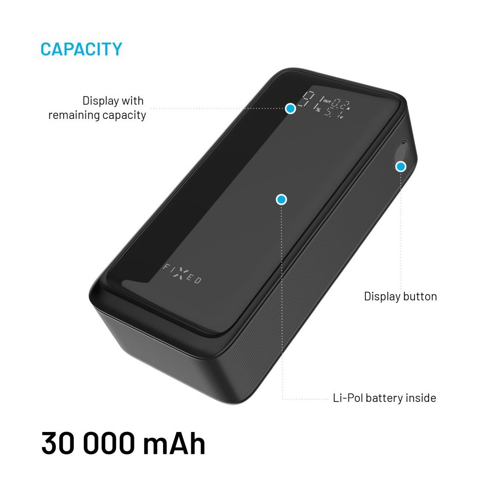 Powerbanka FIXED Zen2 30 Plus s LCD displejom a výstupom PD 65W, 30 000 mAh, čierna