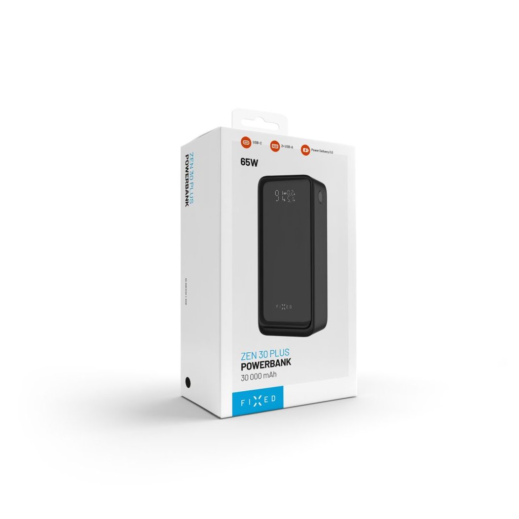 Powerbanka FIXED Zen2 30 Plus s LCD displejom a výstupom PD 65W, 30 000 mAh, čiernaPowerbanka FIXED Zen2 30 Plus - Váš spoľahlivý zdroj energie na cesty!