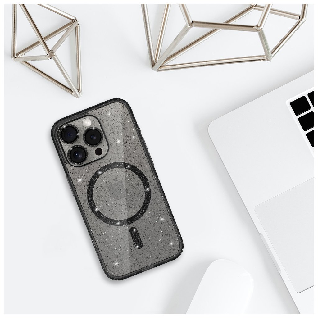 Puzdro Glitter Magsafe pre Iphone 13 Pro Max Black Clear