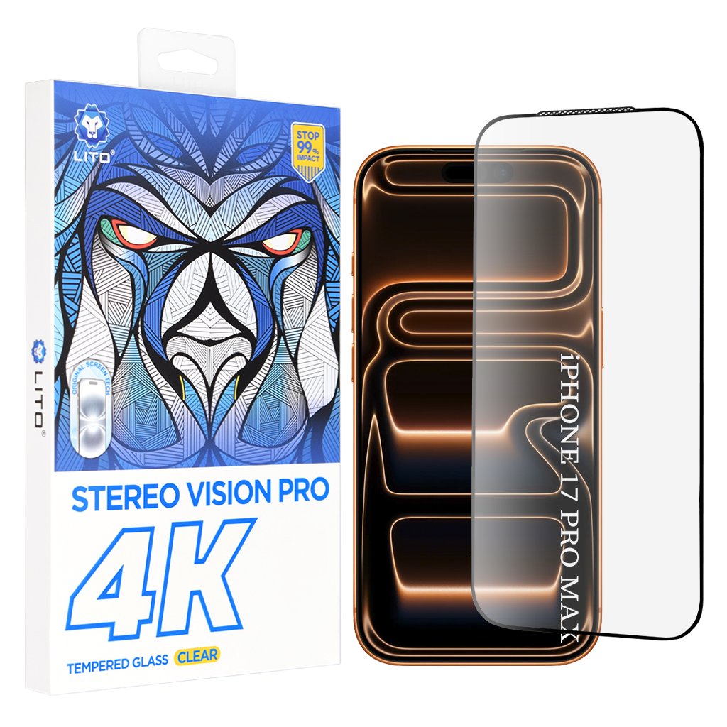 Ochranné prvky Lito sú vysoko odolné a dokonale číre. V ponuke nájdete rôzne rady, vrátane skiel s privátnym filtrom (Privacy) pre ochranu súkromia, ochranou proti modrému svetlu (Anti-Blue Light) pre zníženie únavy očí, matné sklá (Matte) pre elimináciu odleskov, spolu s hydrogélovými fóliami ideálnymi pre zaoblené displeje. Všetky produkty sú výsledkom intenzívneho výskumu a vývoja, čo zaručuje špičkovú kvalitu a inovatívne riešenia pre ochranu vášho zariadenia. Balenie produktu, zdobené výrazným modro-bielym motívom levej hlavy a nápisom "STEREO VISION PRO 4K", podčiarkuje prémiový charakter a inovatívne technológie značky Lito. **Táto ochrana displeja je určená pre:** * **iPhone 17 Pro Max**Dodatočné parametre