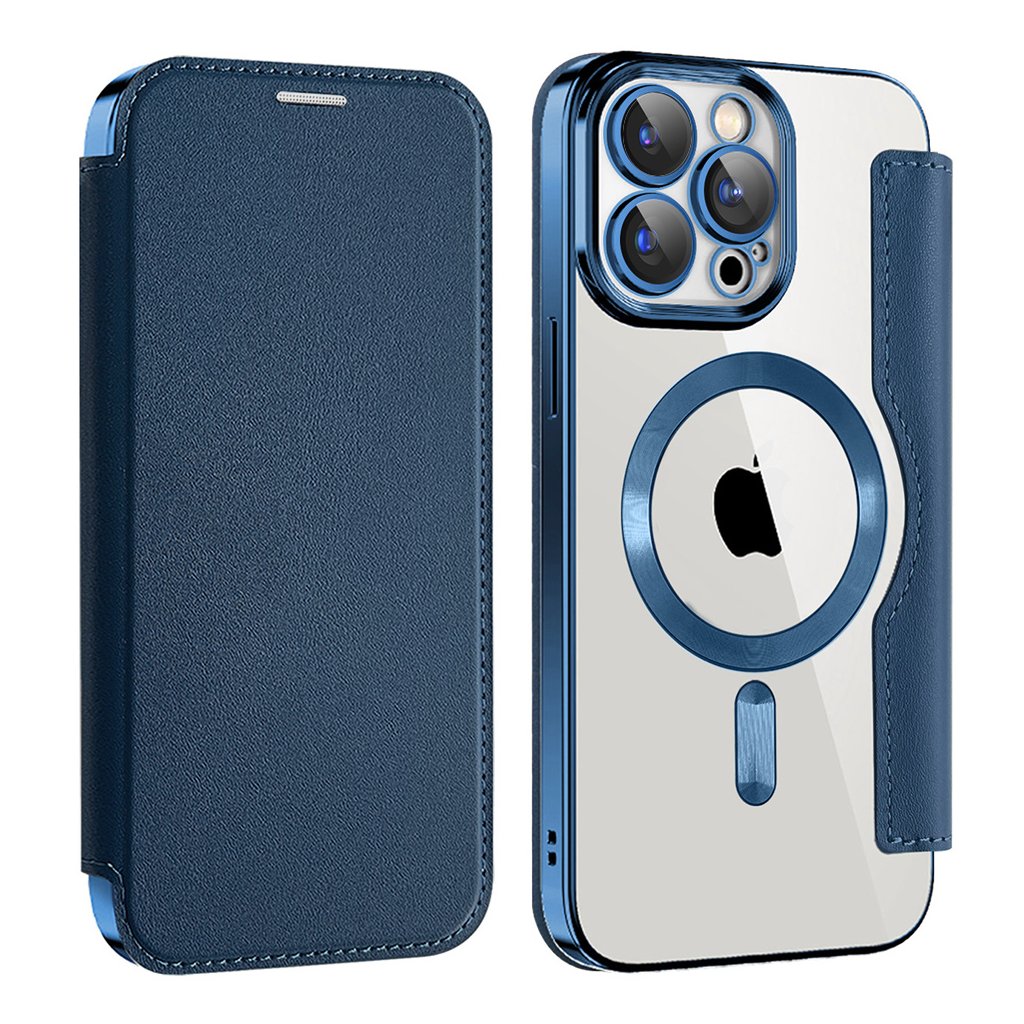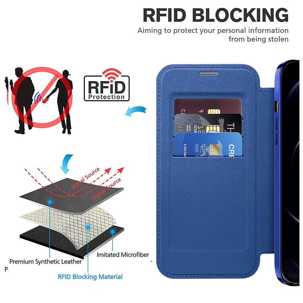 Puzdro Techsuit SmartMag sa pýši sofistikovaným dizajnom, ktorý dokonale dopĺňa váš iPhone. Vonkajšia strana je vyrobená z prémiovej syntetickej kože v sýto modrom odtieni, zatiaľ čo vnútorná časť je potiahnutá imitovaným mikrovláknom pre maximálnu ochranu displeja. Predný odklápací kryt obsahuje tri praktické priehradky na karty a je vybavený **RFID blokovacou technológiou**, ktorá chráni vaše osobné údaje pred zneužitím.