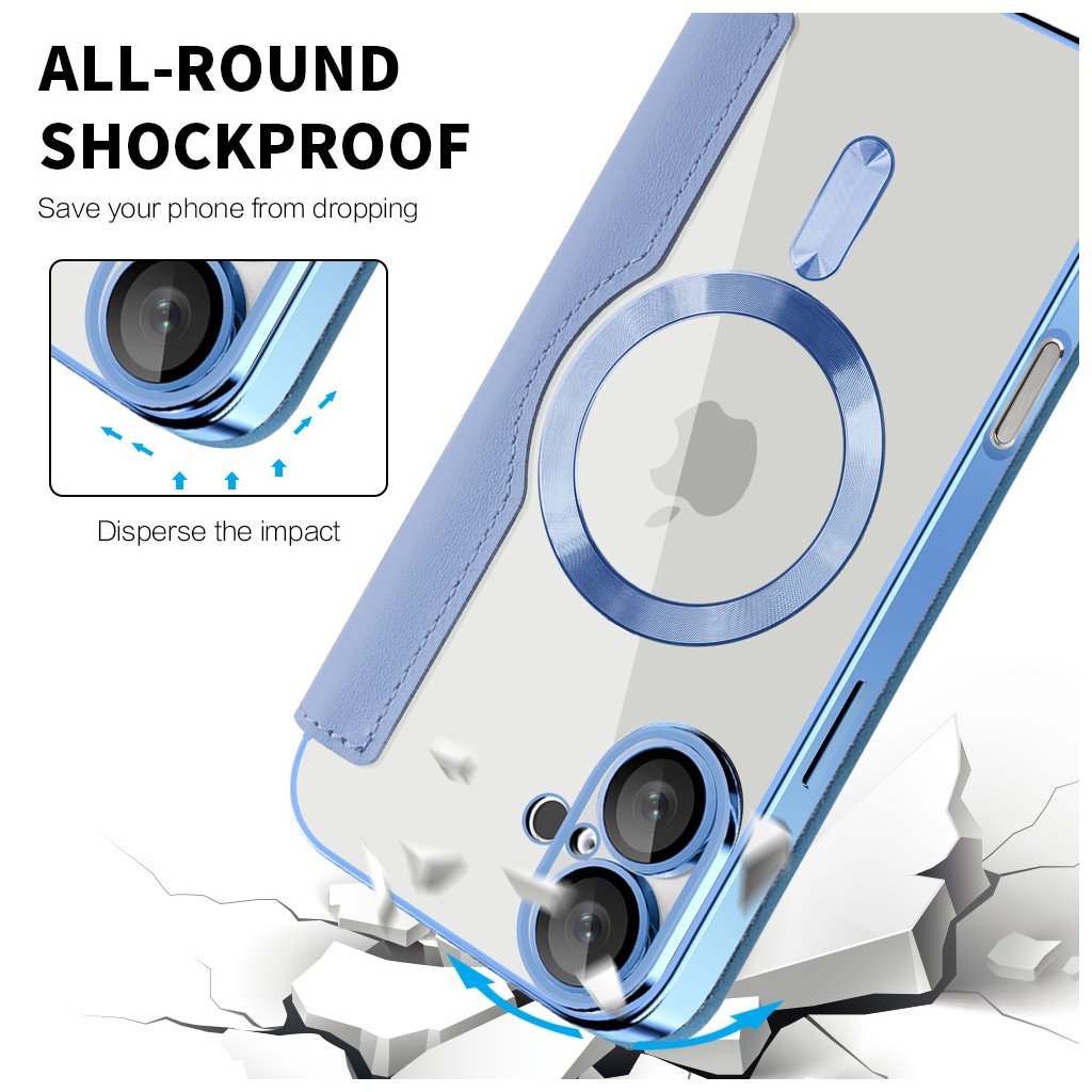 Zadná časť puzdra je tvorená transparentným panelom, ktorý necháva vyniknúť originálny dizajn vášho iPhonu. Okolo fotoaparátov a po obvode telefónu sa tiahne elektrolyticky pokovený rámček v ladícom modrom odtieni, ktorý nielenže dodáva puzdru sofistikovaný vzhľad, ale zároveň poskytuje zvýšenú ochranu objektívov vďaka integrované anti-scratch fólii.