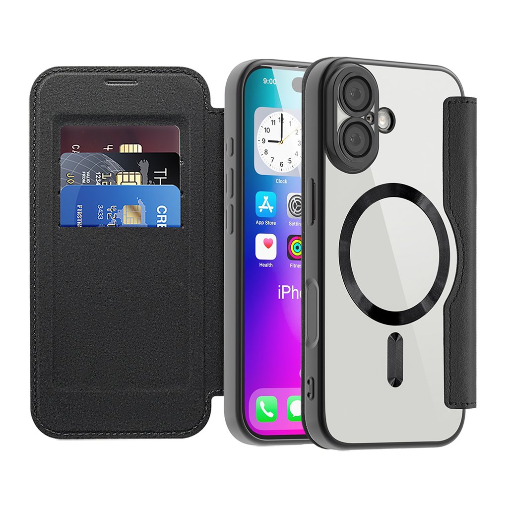 Puzdro Techsuit SmartMag Book Case sa pýši elegantným knižným dizajnom v klasickej čiernej farbe, ktorý dodá vášmu iPhonu 17 sofistikovaný vzhľad. Vonkajšia strana je vyrobená z prémiovej syntetickej kože, ktorá je príjemná na dotyk a odolná proti opotrebovaniu. Vnútorná časť, do ktorej sa telefón vkladá, je priehľadná, čo umožňuje vyniknúť originálnemu dizajnu vášho iPhone 17.
