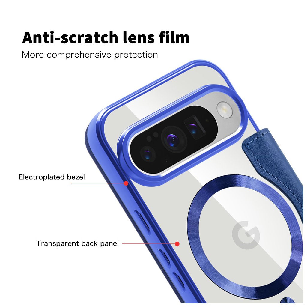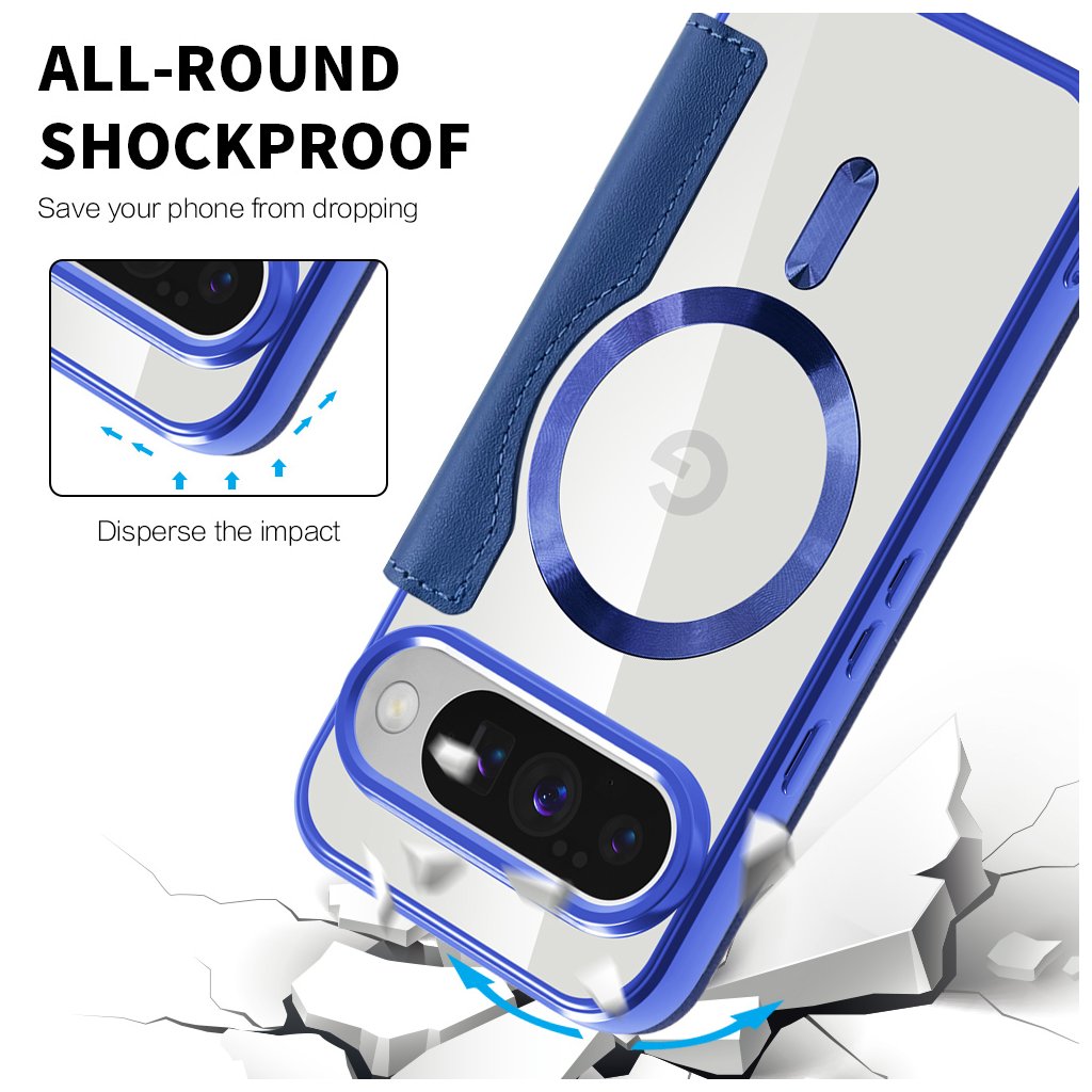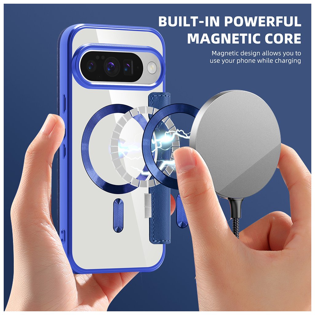 Samotný držiak telefónu je transparentný s modrými okrajmi, čo umožňuje vyniknúť originálnemu dizajnu vášho Google Pixelu. Integrovaný magnetický krúžok s decentným logom "G" a vertikálny magnetický prúžok zabezpečujú bezpečné uchytenie a kompatibilitu s magnetickým príslušenstvom, čo zvyšuje používateľský komfort. Presné výrezy pre konektory, mikrofóny, reproduktory a fotoaparáty zaručujú, že všetky funkcie telefónu zostanú plne dostupné a tlačidlá si zachovajú istý stisk.