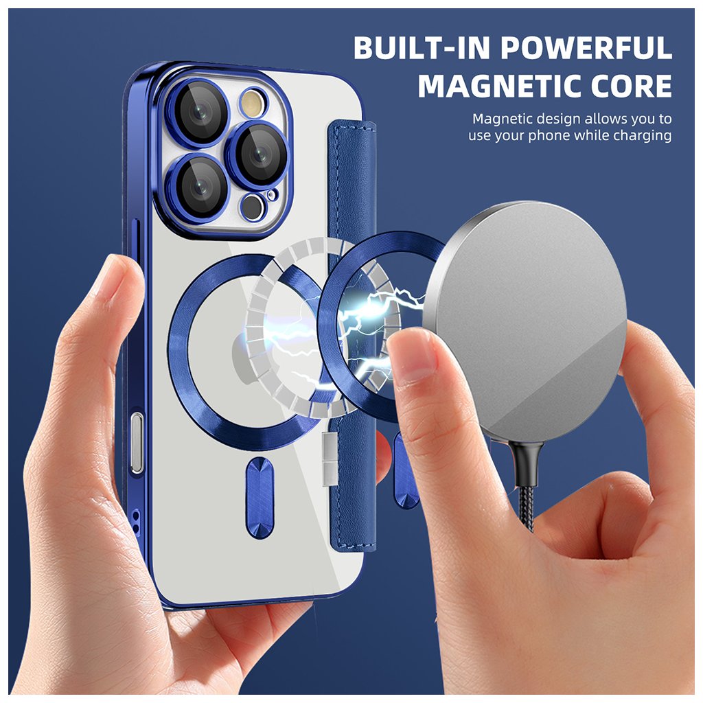 - Celé puzdro je vybavené silným magnetickým jadrom, ktoré zaisťuje bezpečné uzavretie a plnú kompatibilitu s MagSafe príslušenstvom a bezdrôtovým nabíjaním.