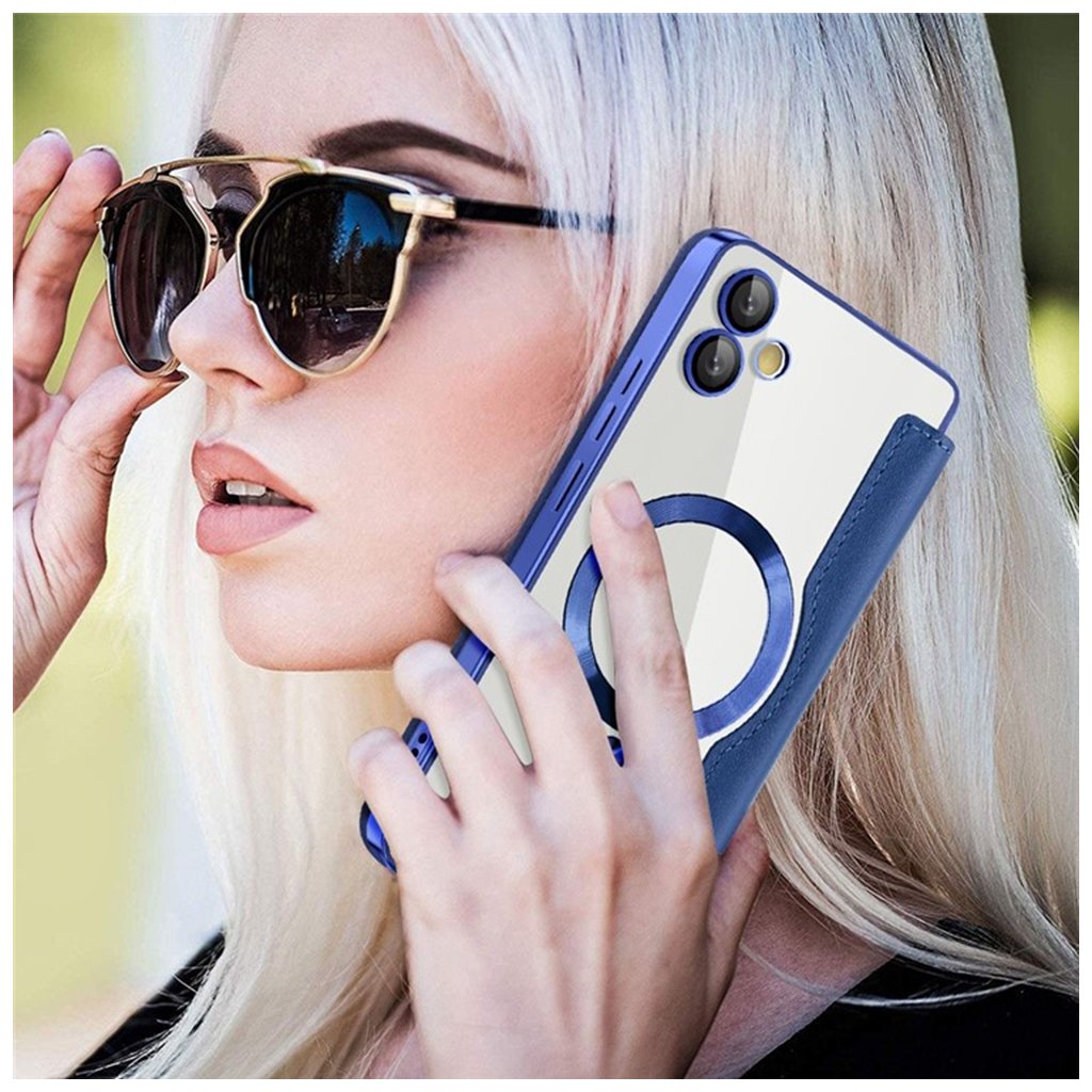 Váš telefón je bezpečne usadený v transparentnom vnútornom kryte s modrými okrajmi, ktoré dokonale ladia s vonkajšou farbou puzdra. Tento priehľadný kryt necháva vyniknúť originálny dizajn vášho telefónu, zatiaľ čo modrý magnetický krúžok na zadnej strane nielenže dodáva modernú estetiku, ale taktiež naznačuje kompatibilitu s magnetickými doplnkami.