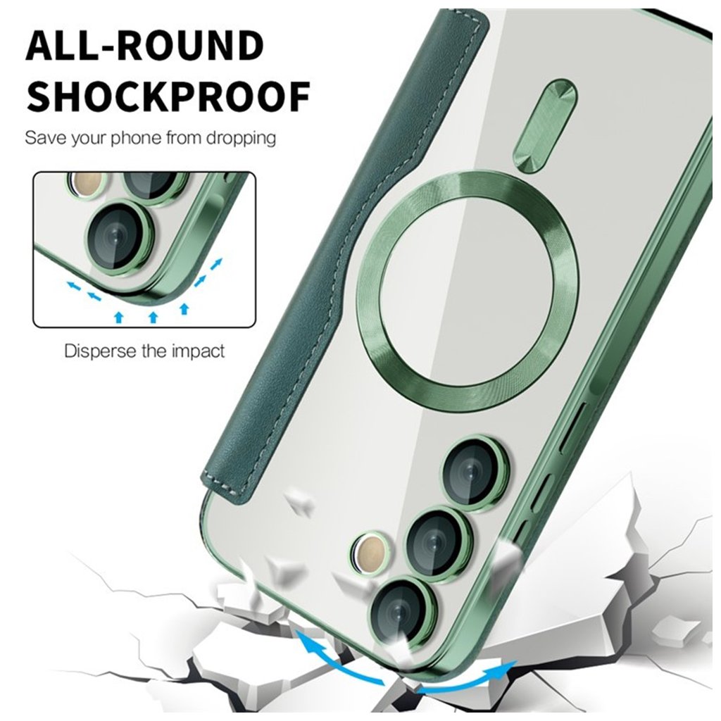 - Rámček je vkusne doplnený o zelené akcenty okolo fotoaparátu a magnetického krúžku, čo dodáva puzdru moderný a sofistikovaný vzhľad.
