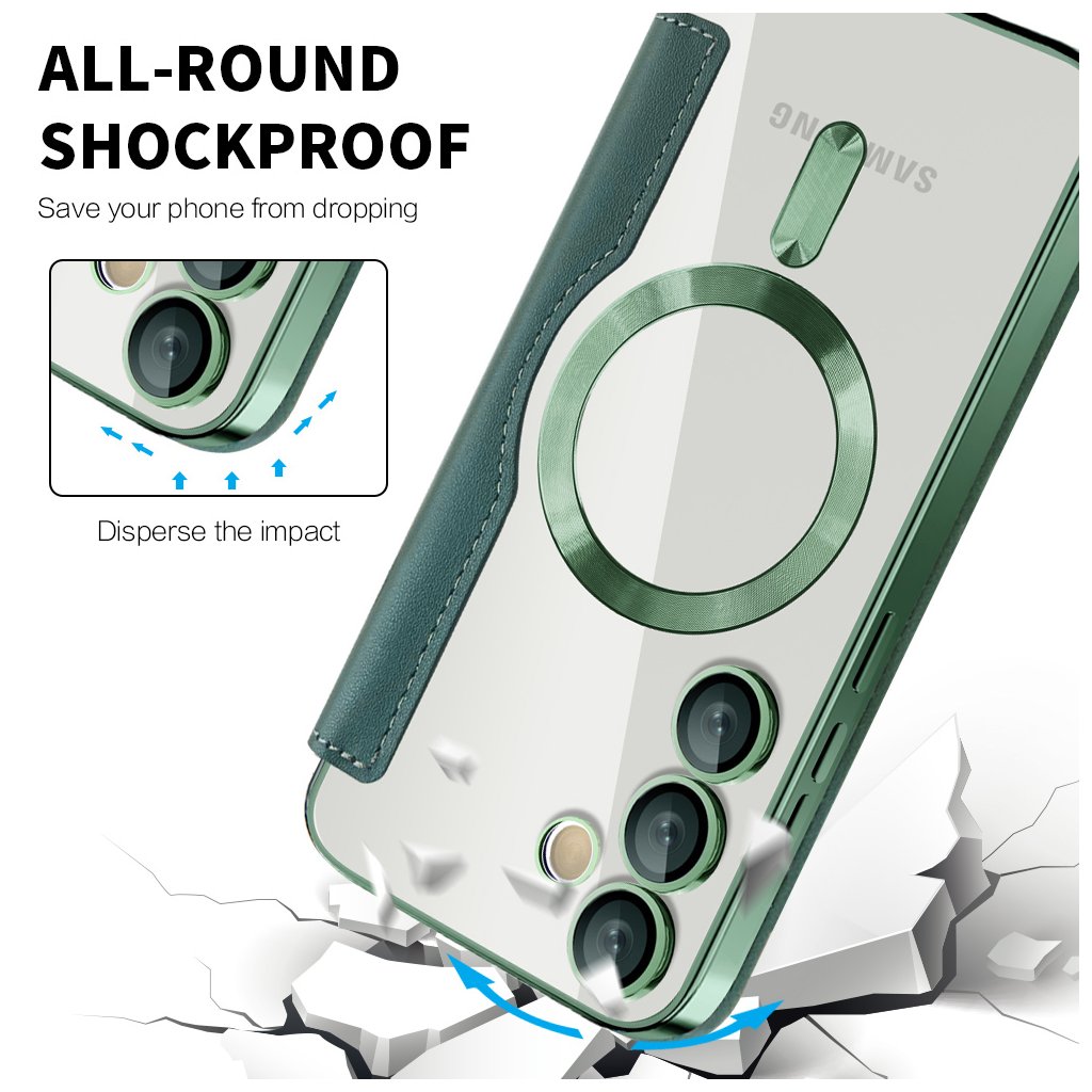 Puzdro Techsuit SmartMag sa pýši premysleným dizajnom, ktorý podčiarkuje krásu vášho telefónu a zároveň mu poskytuje komplexnú ochranu. Vonkajšia strana puzdra je vyvedená v sýto zelenej farbe s jemnou textúrou, ktorá je príjemná na dotyk a dodáva puzdru luxusný vzhľad.