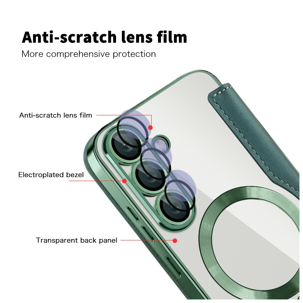 Puzdro Techsuit SmartMag sa pýši premysleným dizajnom, ktorý kombinuje praktickosť s moderným vzhľadom. Vonkajšia strana flipového krytu je vyrobená z prémiovej syntetickej kože v sýto zelenej odtieni, doplnená precíznym prešívaním, ktoré dodáva puzdru luxusný nádych.