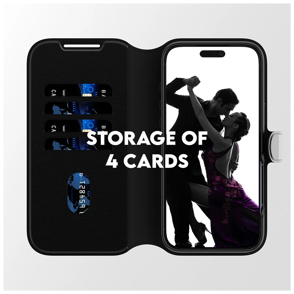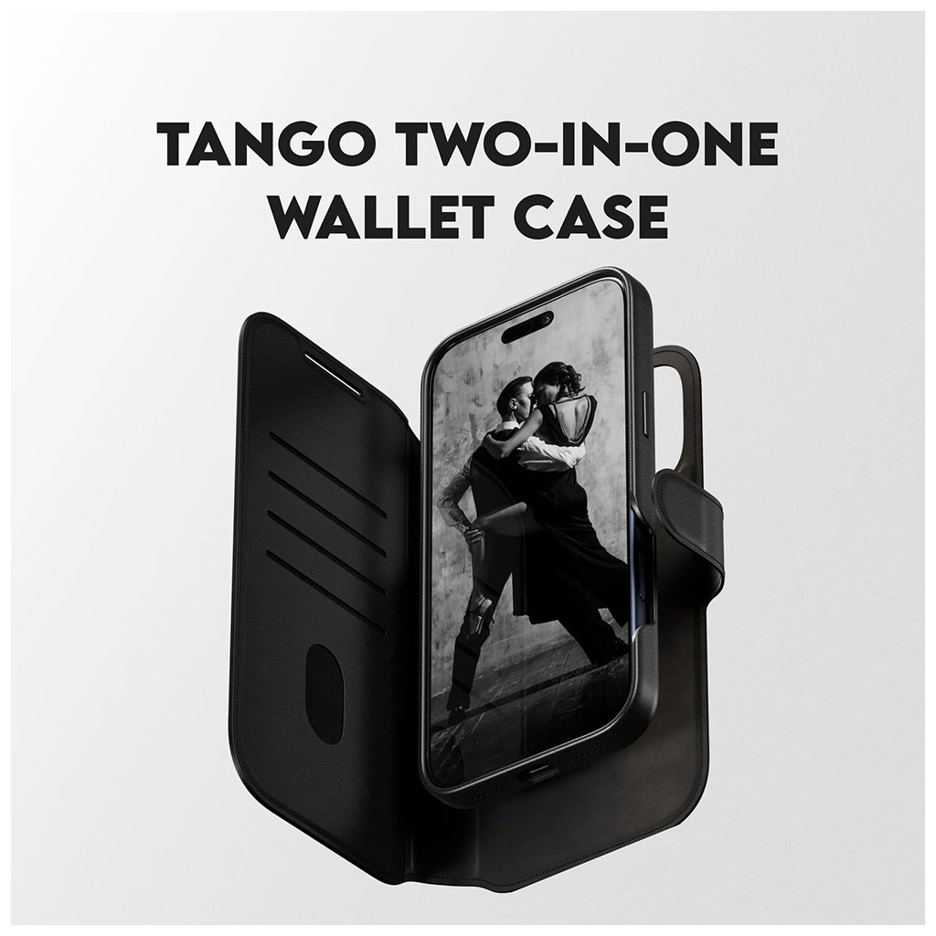 Puzdro Tango Two-in-One Wallet v elegantnej čiernej farbe predstavuje majstrovské dielo dizajnu a praktickosti. Jeho povrch s luxusným pocitom vegánskej kože dodáva vášmu telefónu sofistikovaný vzhľad a príjemný dotyk. Kľúčovou vlastnosťou je jeho inovatívny dizajn 2v1, ktorý kombinuje robustný zadný kryt s praktickou peňaženkou. Vnútorný, odnímateľný kryt je plne kompatibilný s technológiou MagSafe, čo umožňuje jednoduché a bezpečné prichytenie MagSafe príslušenstva a bezdrôtové nabíjanie. Vonkajšia časť puzdra slúži ako elegantná peňaženka, ktorá ponúka bezpečné uloženie až pre 4 karty, takže máte vždy po ruke to najdôležitejšie. Vďaka precíznemu spracovaniu a použitým materiálom poskytuje puzdro ochranu proti pádu z výšky až 3,6 metra, čo zaručuje bezpečie vášho zariadenia aj v náročných situáciách.Kľúčové vlastnosti a parametre: